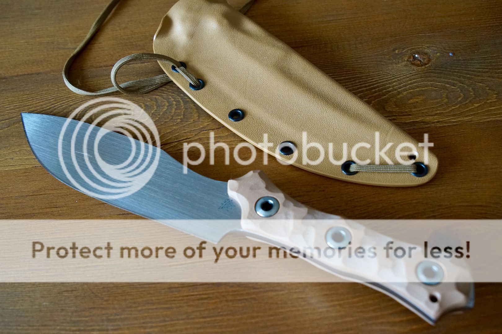 An absolutely beautiful knife...never used or carried. Blade shows minor scuffs from included tan kydex sheath with paracord retention system. $285.