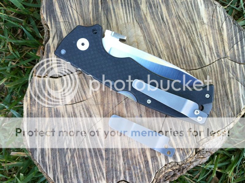 This is an 8.5 ounce folder. It is 5 and 1/8" closed. It is 5/8" thick with .100 ti liners and carbon fiber scales. It is blasted and the carbon fiber is textured for grip. The blade is CPM154 stainless and is slightly over 3/16" bar stock! Ti spacer in the rear. Blade is a tad over 3.5" long. Although this knife is built for tough work, it’s nice hallow grind make for a nice slicer. This folder is a beast! Stout and thick tipped with a wedge yet able to slice so thin it will astound you. Opens smoothly and easy and is surprisingly kind to pockets and easy to carry. This knife comes with an STR titanium clip as well as the original clip. It has a rare thumb plate instead of a thumb stud which is usually found on the AD-10. The previous owner used this knife minimally. It has some slight, small marks near the spine of the blade, but it can’t be seen unless in the right light. It is not much at all, but I wanted to mention it. Don’t miss out on this hard to find custom Demko.