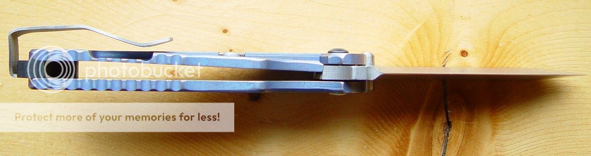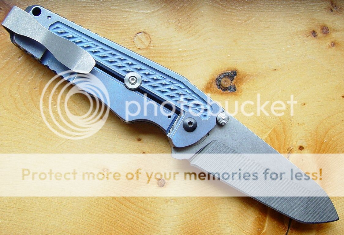 Titanium Framelock with about as much blade as you could possibly fit in a handle this length Checkered on both sides. Liong wanted a deep pocket clip and this is what i came up with. The clip slips into a pocket in the g10 backspacer and the handle screws go thru it to secure to the lock side. OAL open 8.25" 3.5" Blade 3/16" thick Frames are .150" thick,
