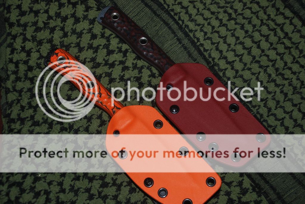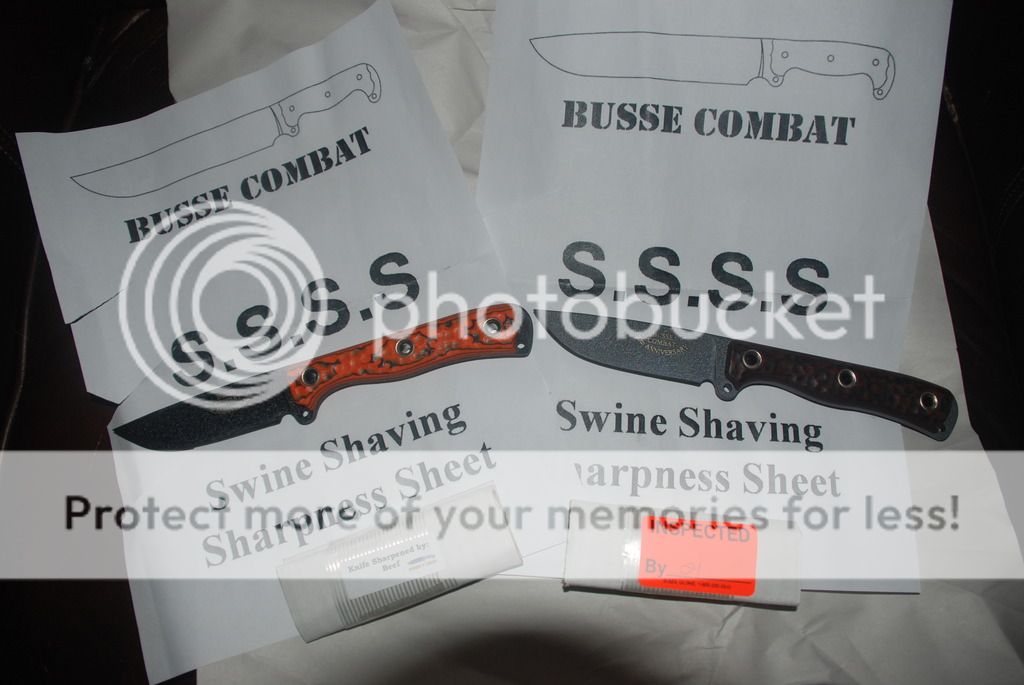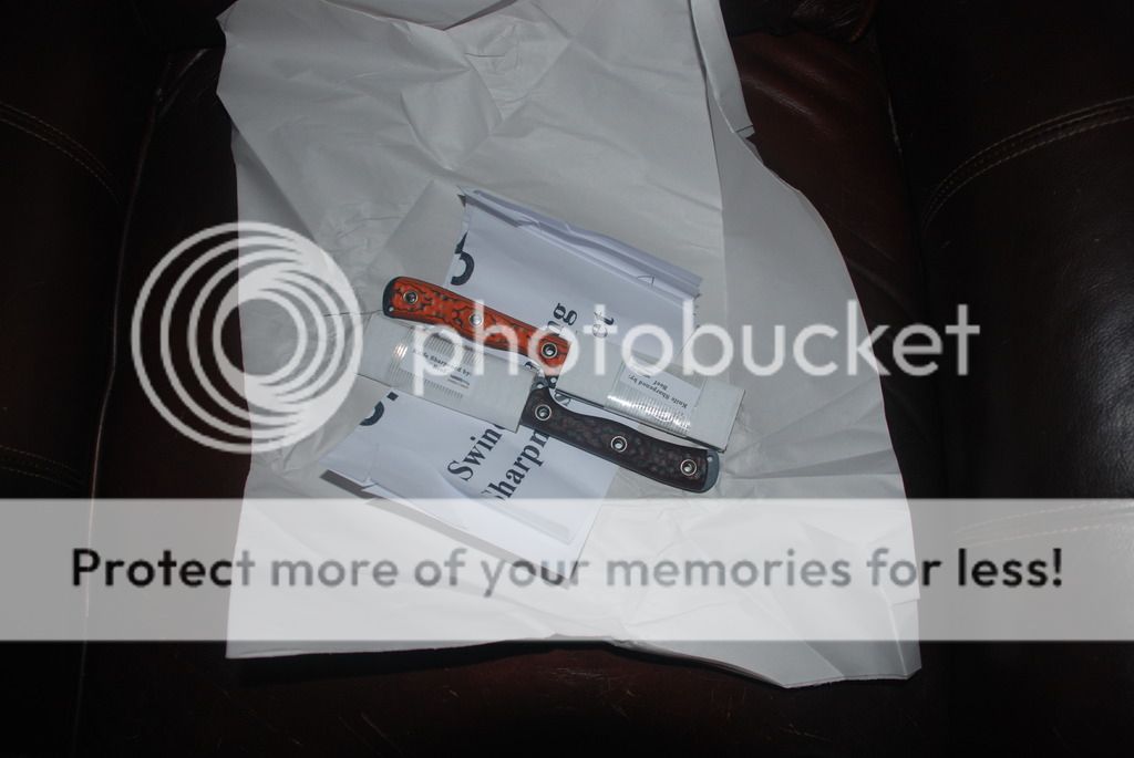 I received an email from Busse/UPS yesterday that my shipment was on the way. I was anxiously waiting for the Big Brown Toy Truck this morning when it arrived at 1147. Just like Christmas when I was a kid! Here are a few pics. The orange/black one was going to be a surprise for my wife, but she found out about it when the Dave Brown "pants" I had ordered for them arrived a couple of days ago, before the knives got here.