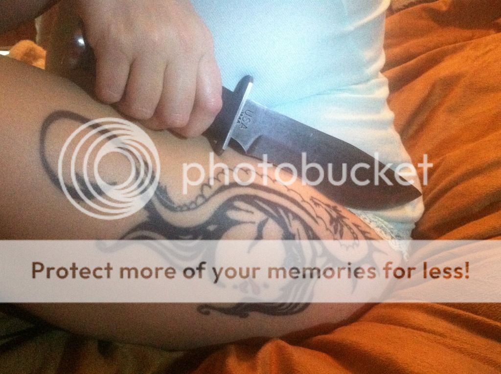 Since I don't currently have a girl friend, here's the best I can do - my Red Heeler, Spice and a vintage Kabar USN MK-V hard hat diver's knife.