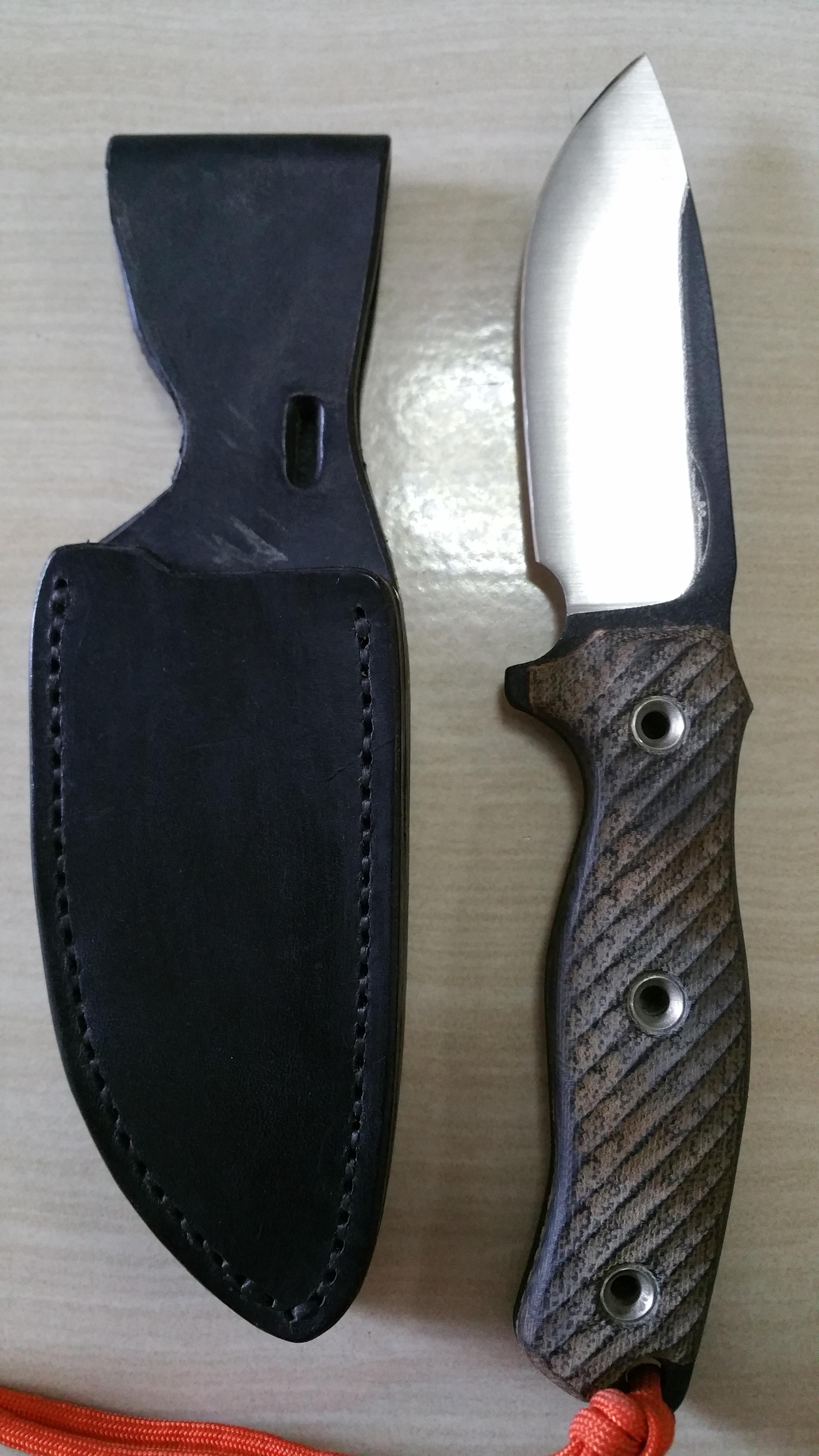 Another HRLM, with NWA(Nick Allen) Re-grind, convex mirror edge. This one comes with an Armoralleather sheath, retaining strap is missing(came this way from previous owner.) $165+3.5% Paypal fees