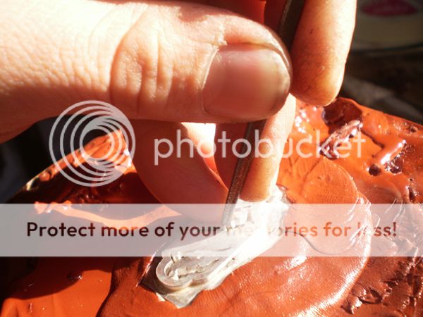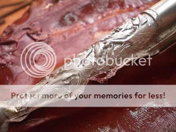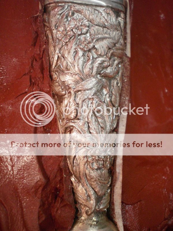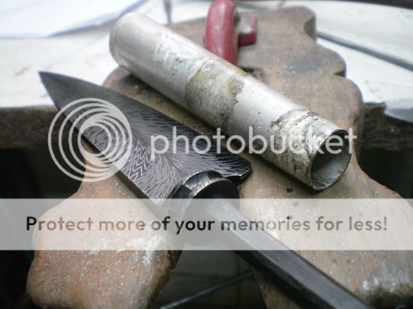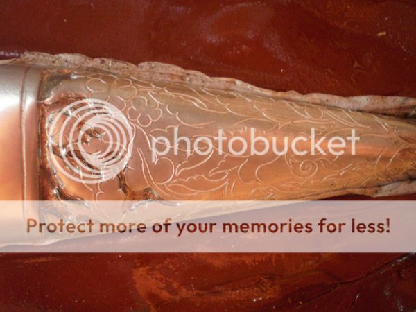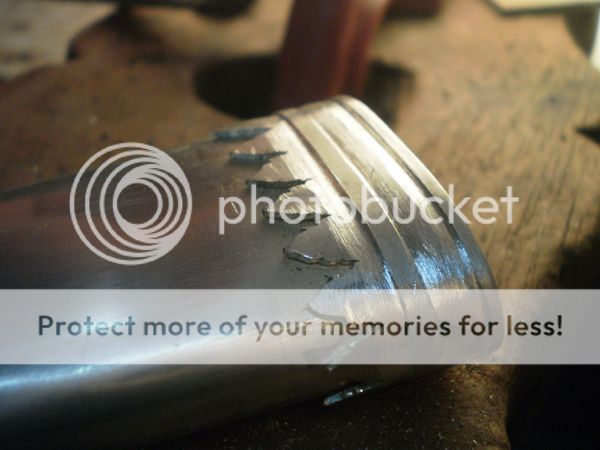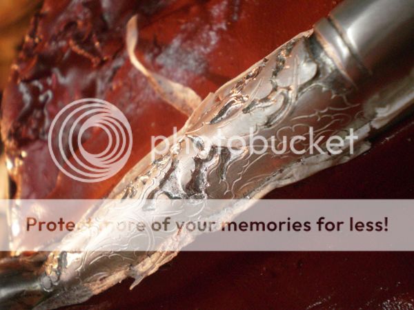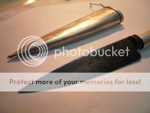 9blades: As I explained in the first Luis's WIP, when the sheath is ready he puts inside two pieces of 0,8 or 0,5 mm brass or nickel silver bent in opposite directions, forming two arcs on each side, with the belly facing the side of the blade. They run the entire lenght of the sheath, they call this "ribs" and they keep the blade tight and centered in its place. The blade never touches the inside of the sheath.