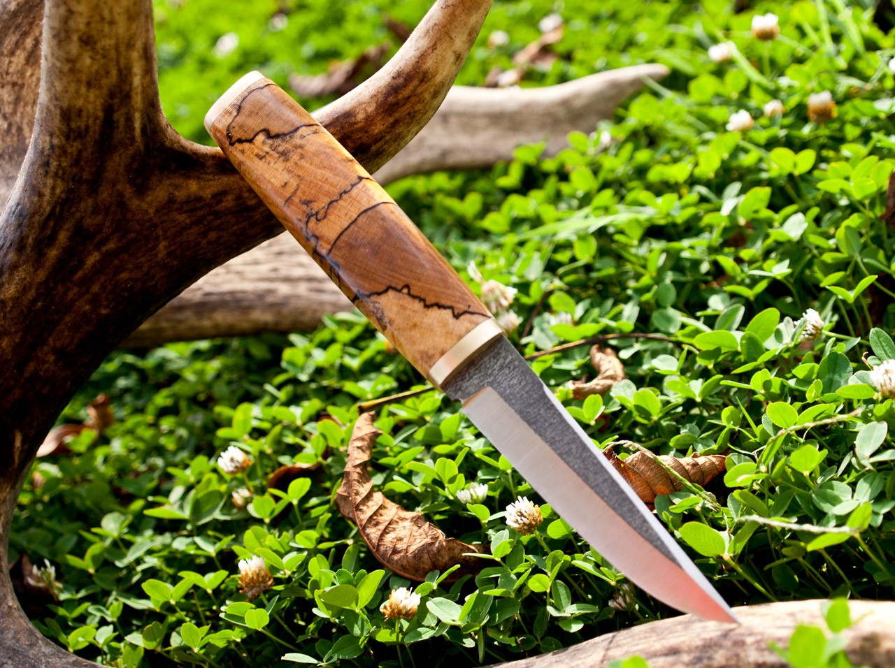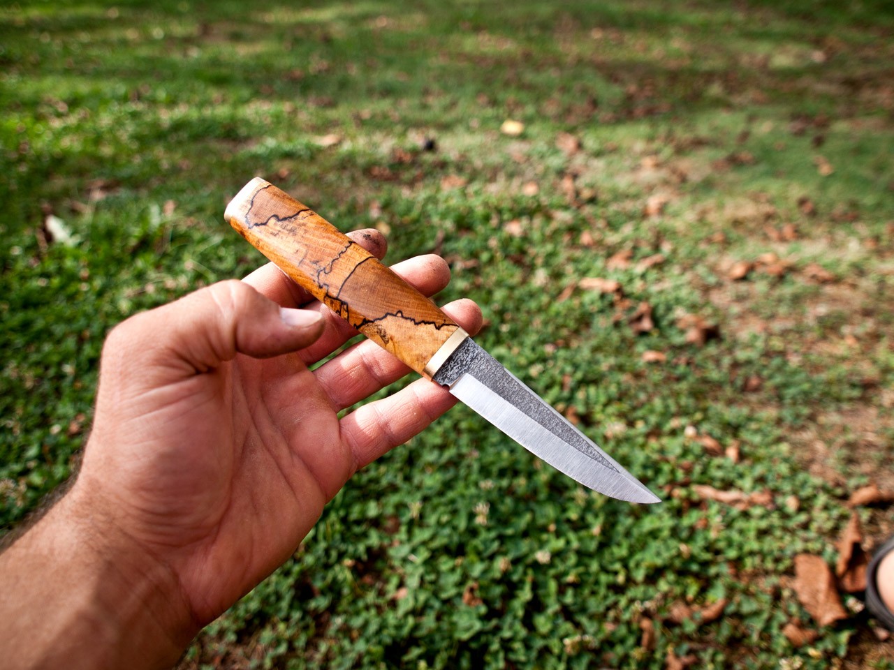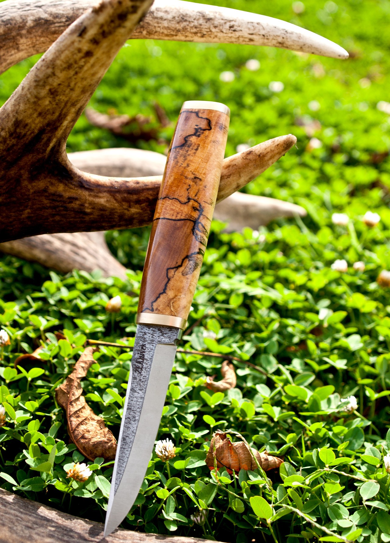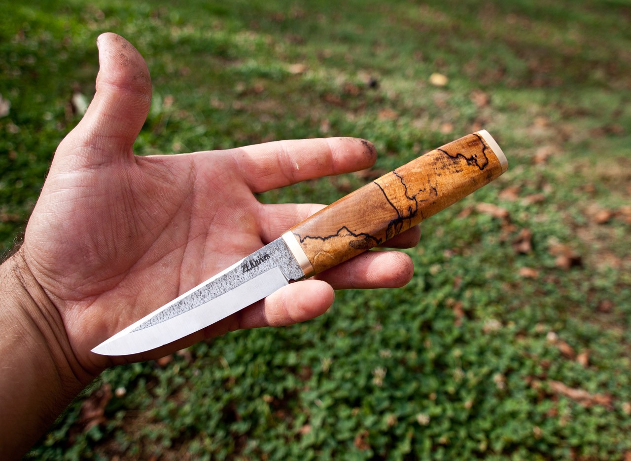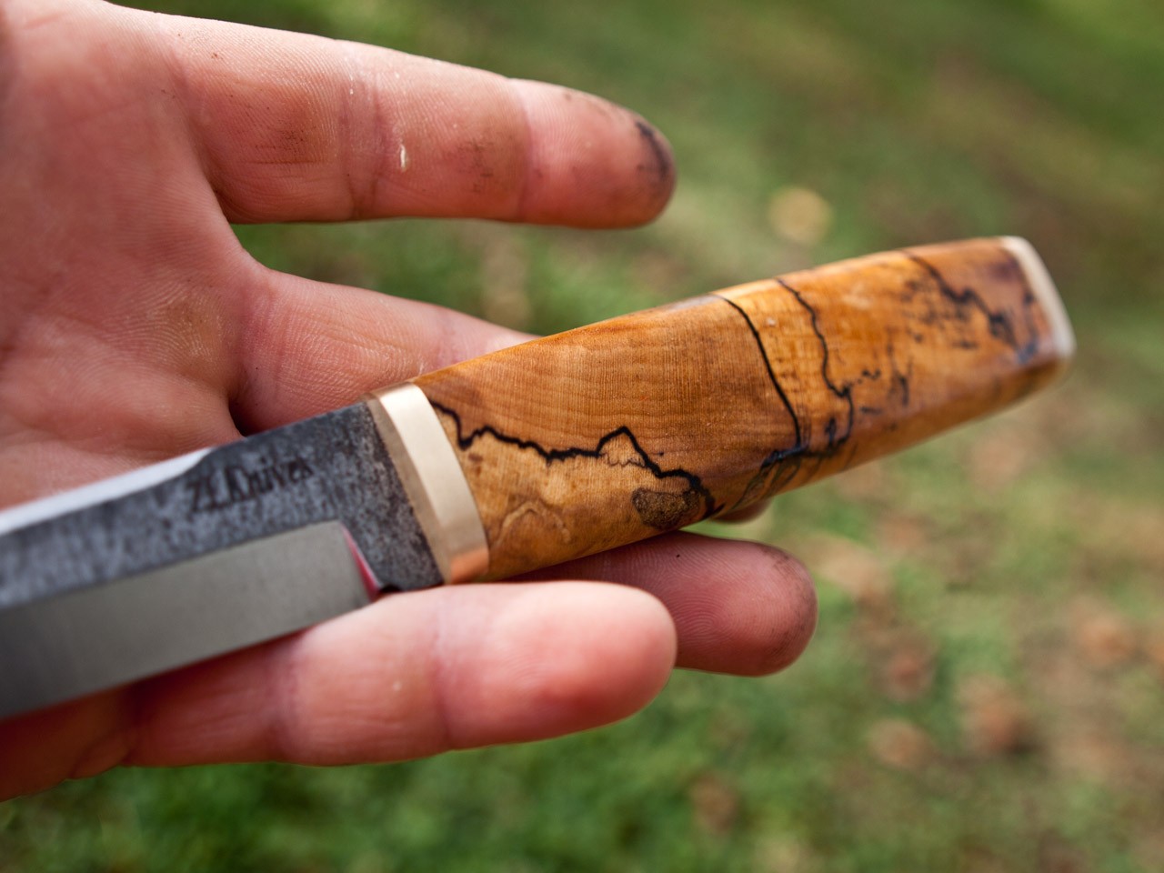 Handle- stabilized spalted maple and brass