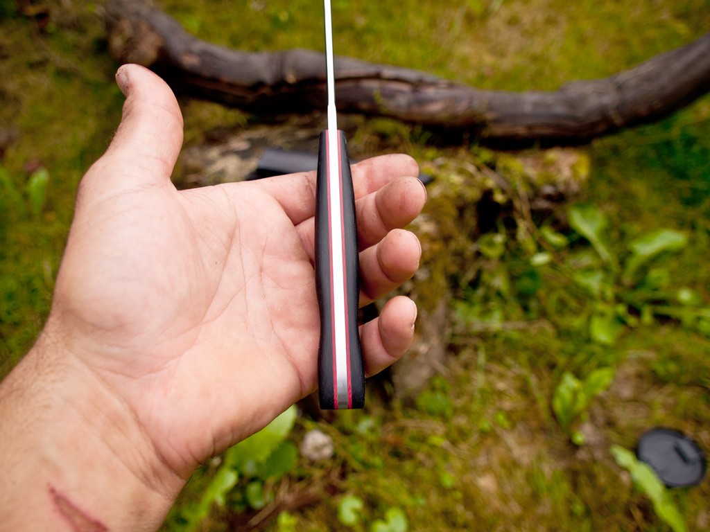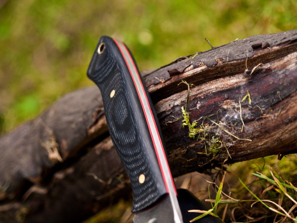 Handle- Black micarta with red g10 liners
