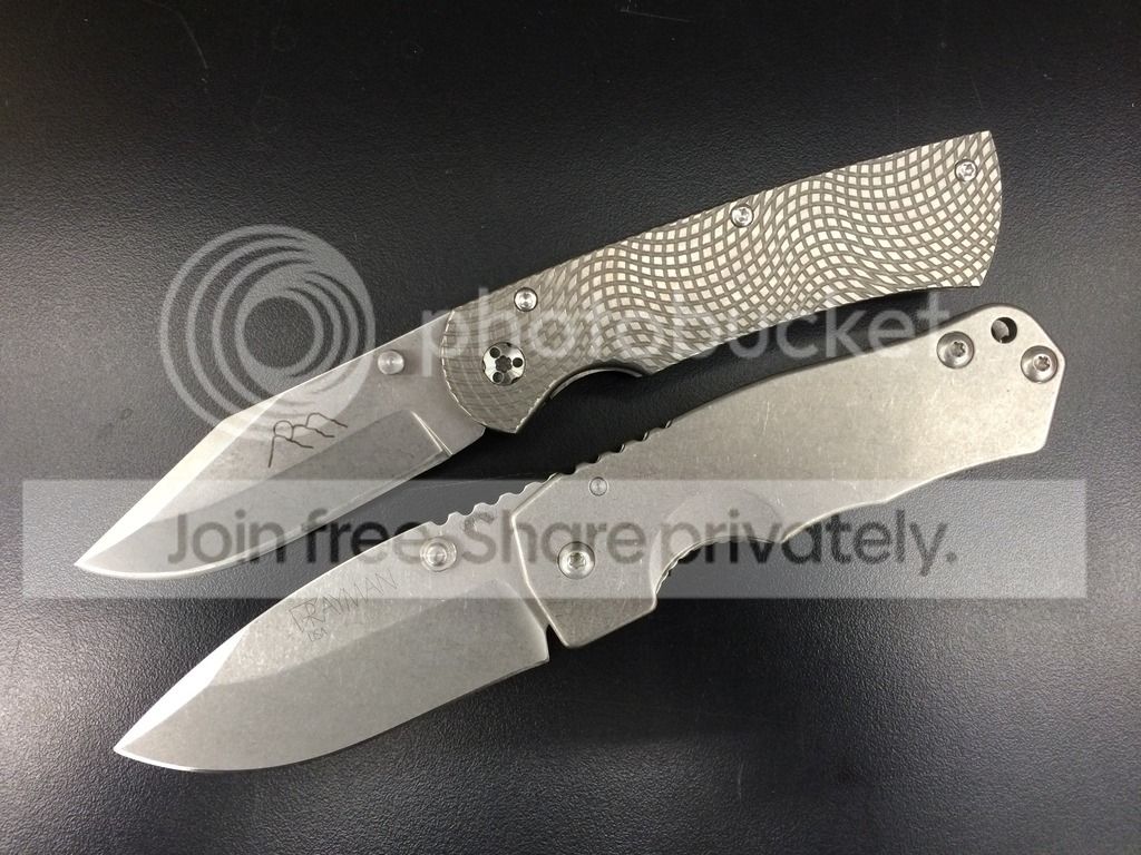 Per BladeCommander's suggestion in this thread, http://www.bladeforums.com/forums/s...p-me-pick-out-the-most-bad-ass-FULL-TI-folder! I have decided to purchase a brand new Grayman Satu in full ti. After doing a little research, I found out they changed a few major things from the original design. I don't have it yet, but I know they corrected the sizing issues with the pivot bushing, so there shouldn't be any blade play, and they use cpm20cv now instead of s30v, which is kind of neat. They also sharpen their edges smooth now instead of toothy, which is also great. I haven't seen many of these "new" style Grayman Satus floating around the forums, and I imagine it's either because too few know it's been upgraded, or because too few know the Satu exists in the first place. For a .210 thick 4.25" cpm20cv blade sitting on two 3/16 6al4v titanium slabs, I thought $390 was a great price considering most of the competition in the same dimensions or larger are $600+. Additionally, none of the other monsters I've seen are made with 20cv... However, whether or not this knife is truly a good alternative to some of it's more expensive competitors remains to be seen. If anyone is interested in a review of this "budget friendly" (i say that lightly) monster titanium folder, I'd be happy to do one when it gets here Thursday/Friday