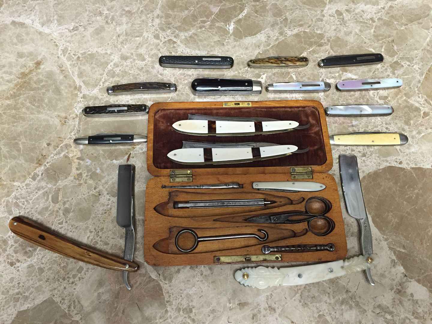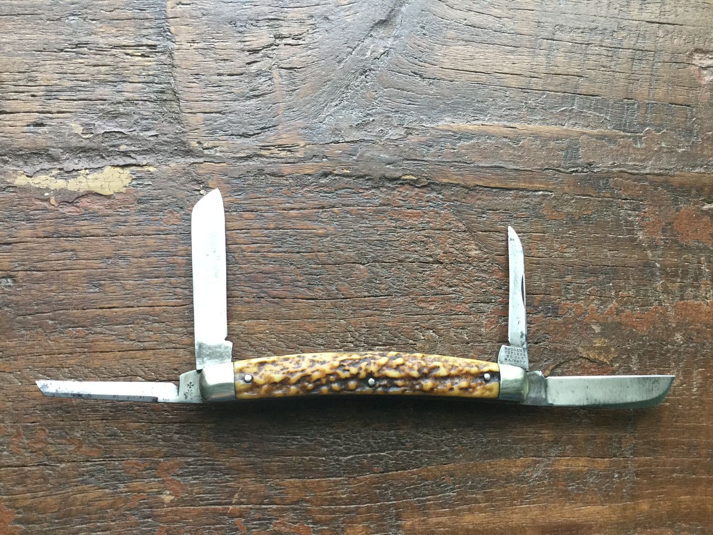 It has a spot here and there, and has likely cut a whisker or two, but it is otherwise in pretty nice condition. No cracks to the horn handle, and it's blade is fully intact.