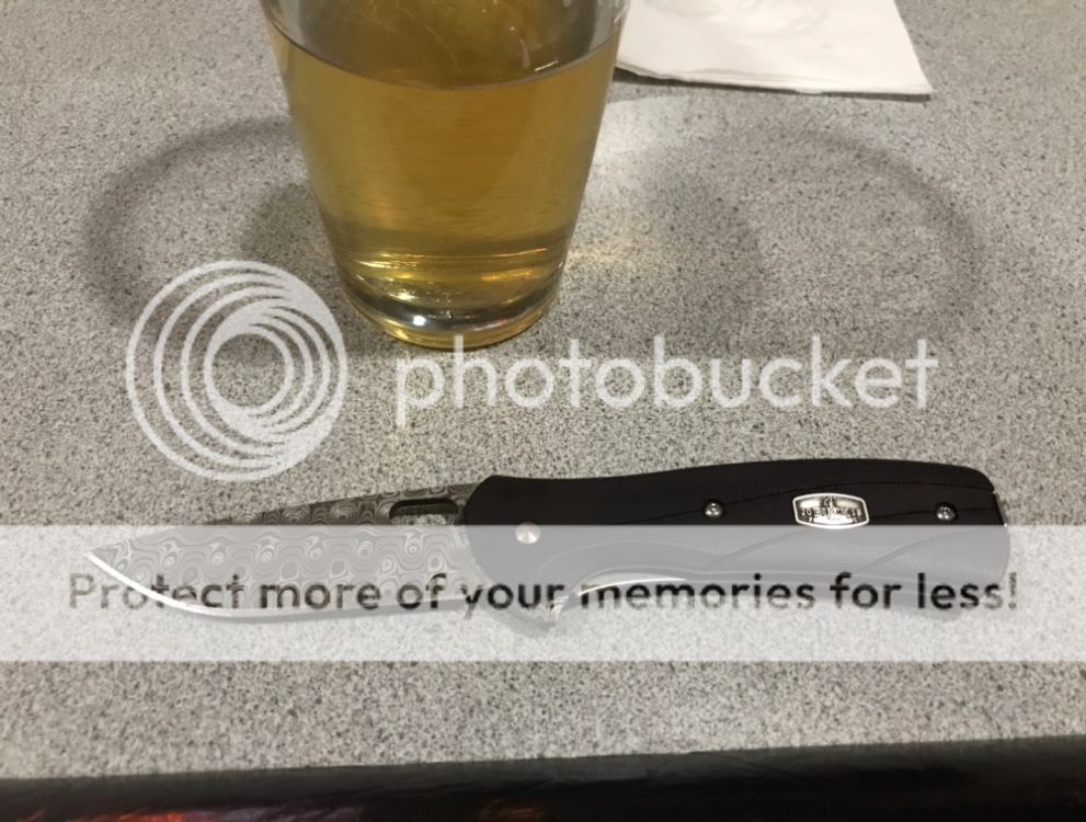 looks good. worth the wait it appears.Ok here’s the mystery knife. I went straight to the club for fish and beer and my wife brought it. She’s a good wife. It’s worth the wait. Spectacular knife. Buck is really really hard to see and everyone said I was crazy when I said I found it. Had to take about 20 pictures to finally show em. I was wondering if it would be 115 or 117, it’s 115, also extremely hard to make out and multiple takes required.