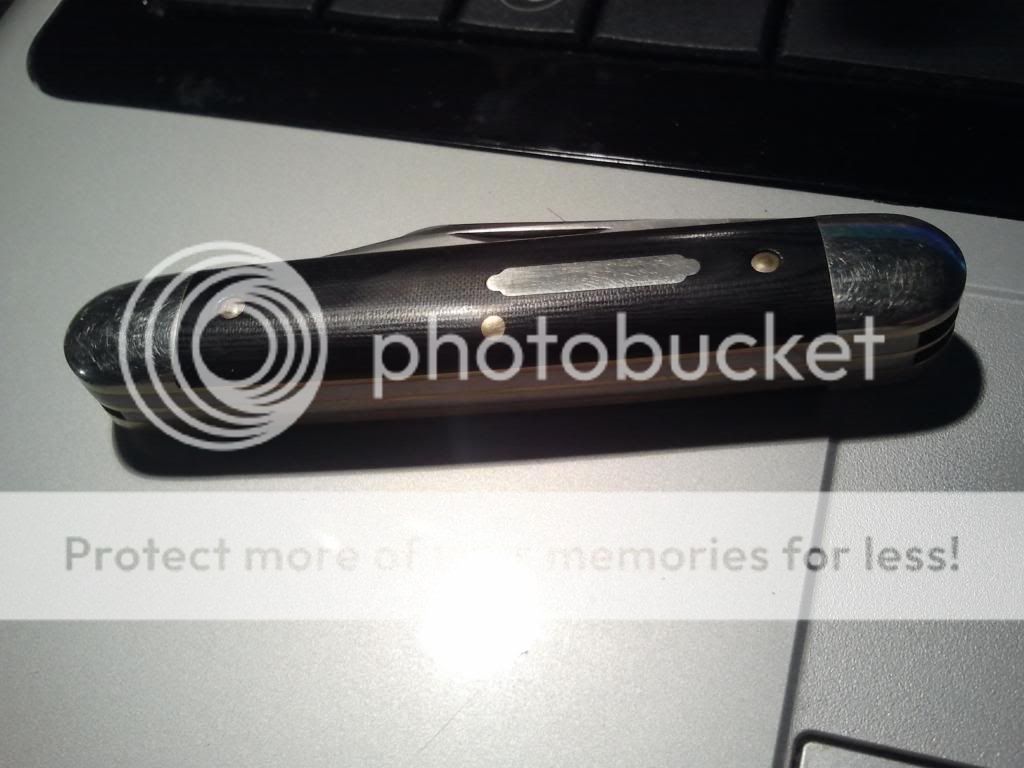 For all intents and purposes this is a very nice knife I just can't get into knives with three blades though. This one is a GEC 68 in black linen micarta. It's my first GEC, I see now why people love the quality of GEC. I received this one in a trade. It was funny as part of the trade had an AG Russell Barlow lockback, and that one is growing on me fast.