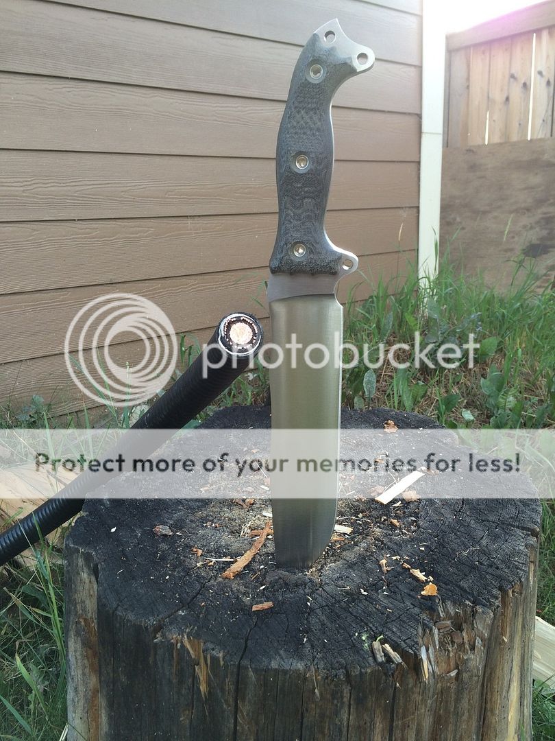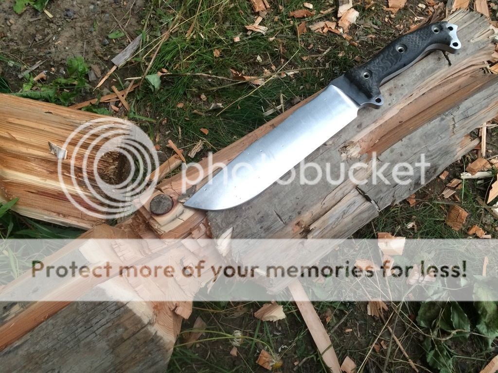 Actually, speaking of handles, I have to voice my hate of the deep, sharp edged rivet holes in the scales. They are very uncomfortable, they dig into my palm pretty badly. No blood or anything, just not nice to swing for an extended period. They're either going to get a good sanding, or I'll just replace the scales entirely.