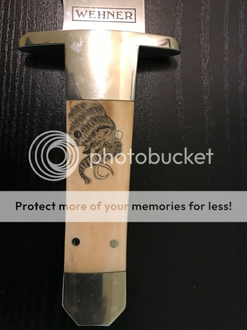 I was lucky enough to pick up this custom bowie by Louisiana maker Rudy Wehner. This thing’s a beauty, polished stainless steel blade and a scrimshawed mammoth ivory handle. I read somewhere that Rudy used 440C and ATS34 when he was making knives. The blade had a shiny, almost mirror polish. Any way to tell 440C from ATS34 just by looking at it? Is one shinier than the other? Etc
