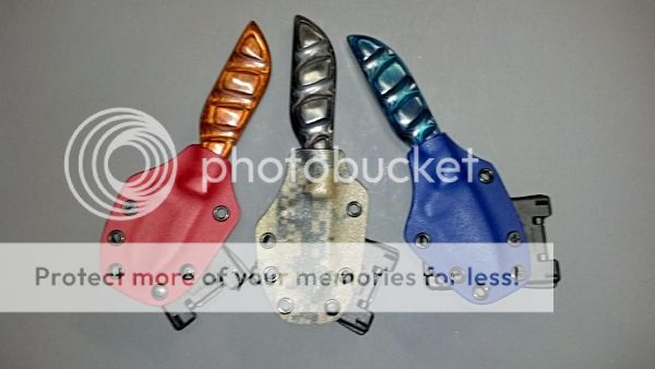 After such a great feedback from members I decided to post some more for Mothers Day. I have 3 available at the moment. 2 wood handles one pink the other purple. Then I have one with stag and wood. They will be sold with kydex sheaths of your choosing and will ship out following day of order. Choices of kydex colors are black, od green, coyote tan, arctic white, blue, red, earth brown, chocolate, pink, purple. I will also throw in some paracord for neck carry at no extra charge (same colors as kydex).