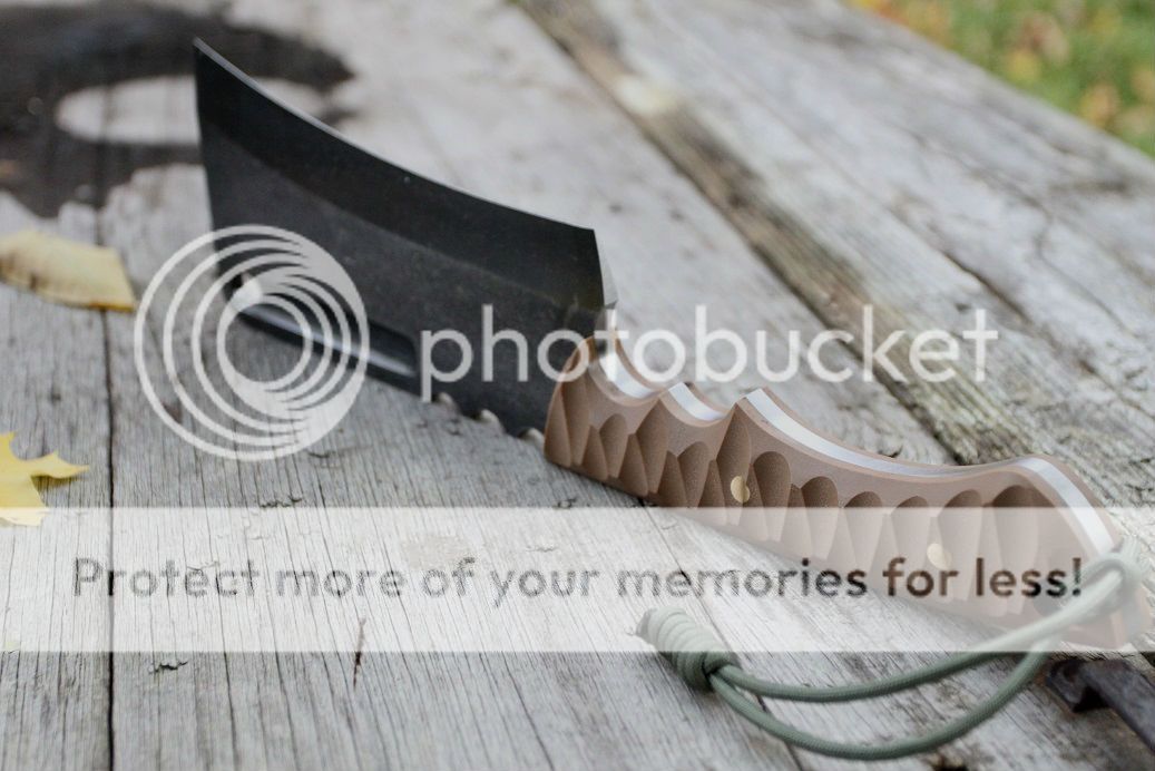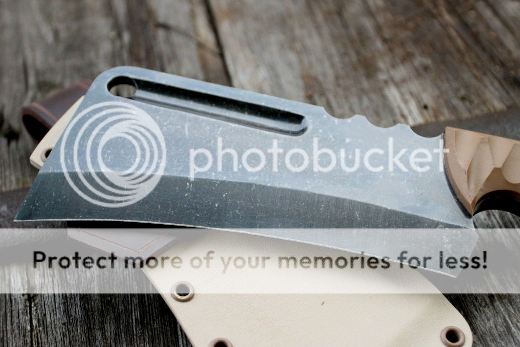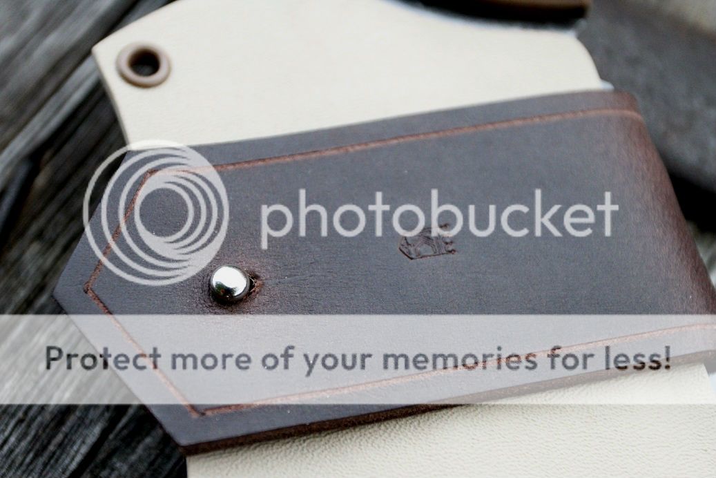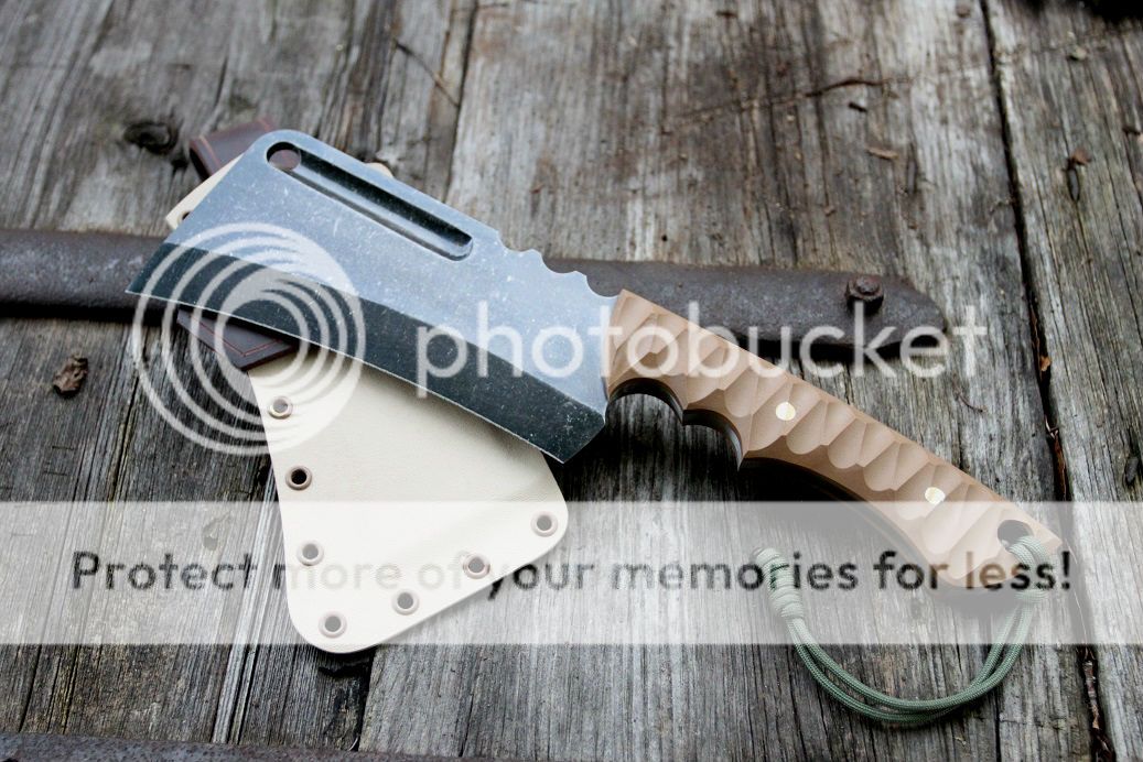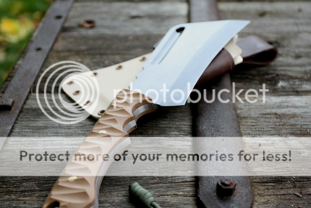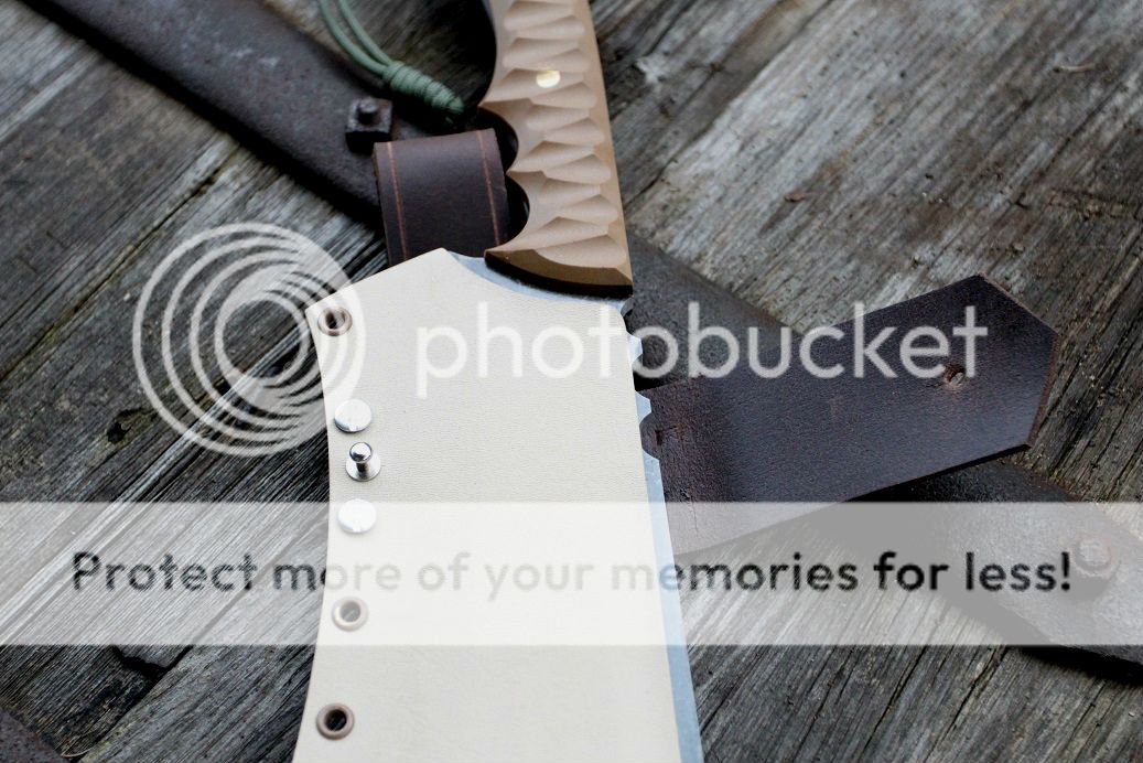 sheath is desert tan with aluminum and coyote brown hardware, finished off with some beautiful buffalo hide!