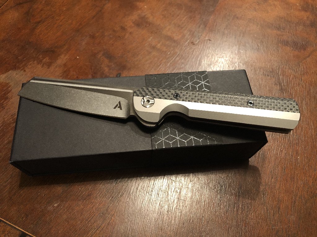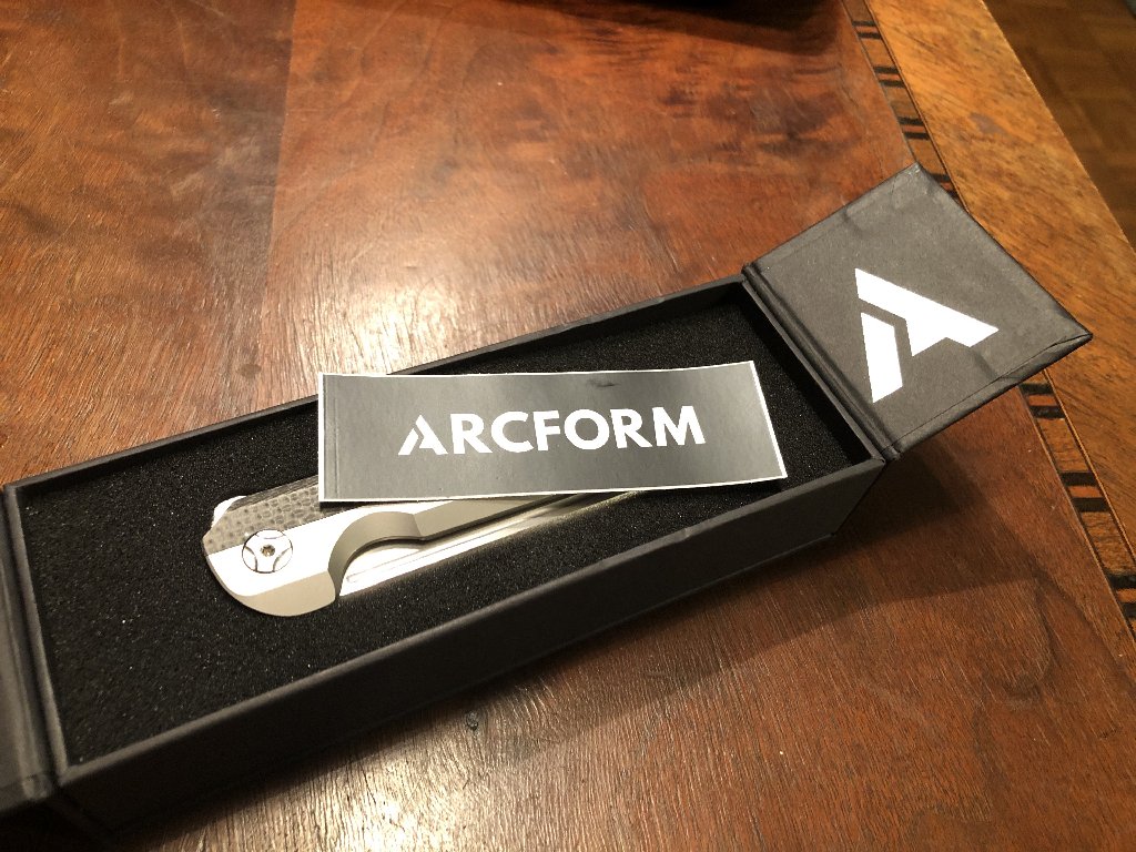 For sale I have my Arcform Slimfoot w/ carbon fiber inserts. This particular piece is a collaboration with Geoff Blauvelt aka TuffKnives. It has a 3.5" s35vn Sheepsfoot blade, titanium frame, carbon fiber inserts and a ceramic ball bearing pivot. I am the original owner of this knife and it has been pocketed a few times but has never been used to cut anything. The flipping action is snappy and the blade closes very smoothly and is also dead center.