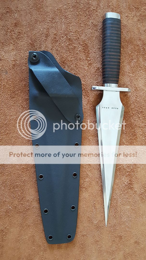 Sheath is custom .080 black Kydex currently set up for right hand hip draw.