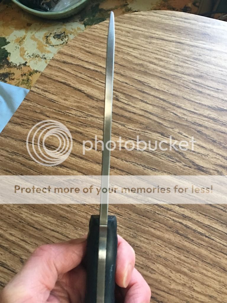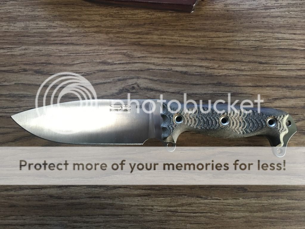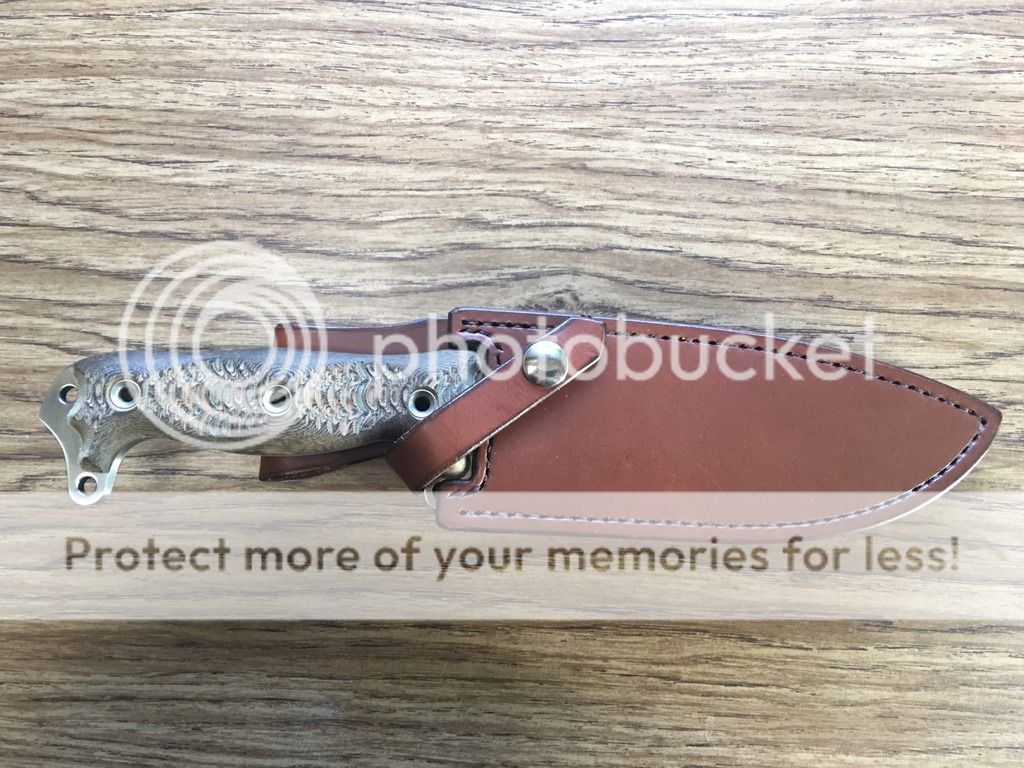 Finally the Game Warden HACK that is .22 thick at the spine, hollow ground with a convex edge from factory, beautiful orange/black G-10 slabs and is razor sharp. It comes with a leather sheath made for it with orange stitching. $325 shipped priority USPS.