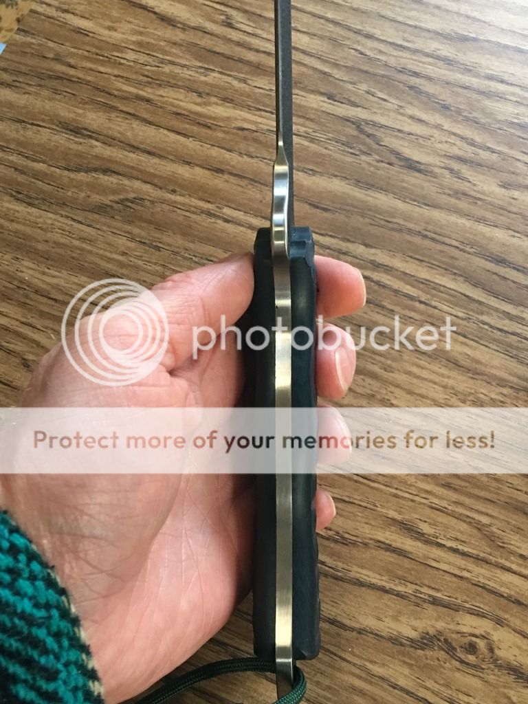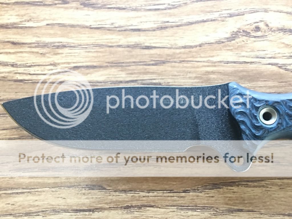 Next up is a BATAC with black blade and dark blue/black G-10 slabs. There is a small spot of missing coating on the logo side by the tip you can see in the last photo. It has a polished spine from the factory and comes with a kydex sheath. $TRADED