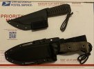 SOLD BUSSE ASH1 INFI User $440.00 OBO. This monster has seen a little use, there is a few more lifetimes of use in it. The stock is 5/16. The steel is INFI. The scales are Magnum black canvas micarta. The Sheath is by Okuden - made using the same knife. This one has coating wear on the blade, the handle area seems perfect. There are coating chips on the spine, and scratched blade faces. The edge is original angle - has been touched up a few times. A Citristrip bath and a strop and this will look new, or a trip to the Busse Spa - or just leave it as is and beat it. Probably the most overbuilt belt knife that still actually perfoms well - or knife shaped Axe that carves well. Pry open doors, baton cinder blocks, test your belts abilities. This is my last ASH... Ill probably be regretting this.
