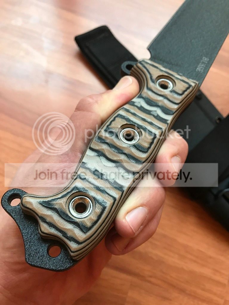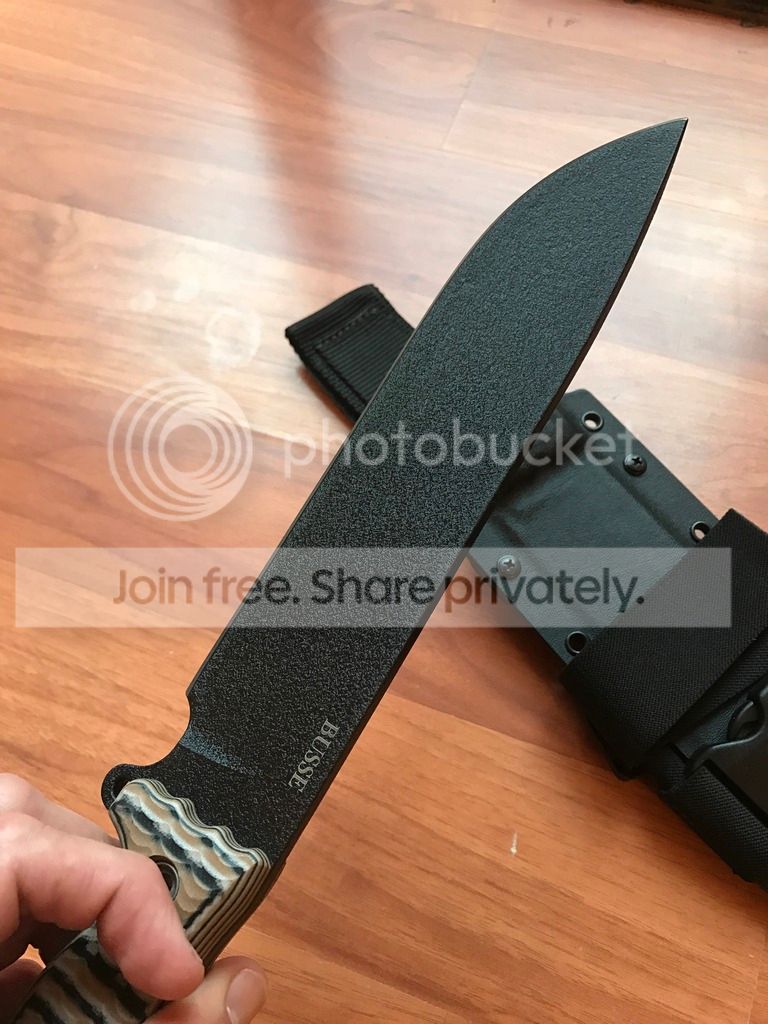 I bought this ASH-2 off the exchange and while I love the knife, Ive never had a straight handle BUSSE before and it just isn't that comfortable for me. It comes with the sheath pictured.