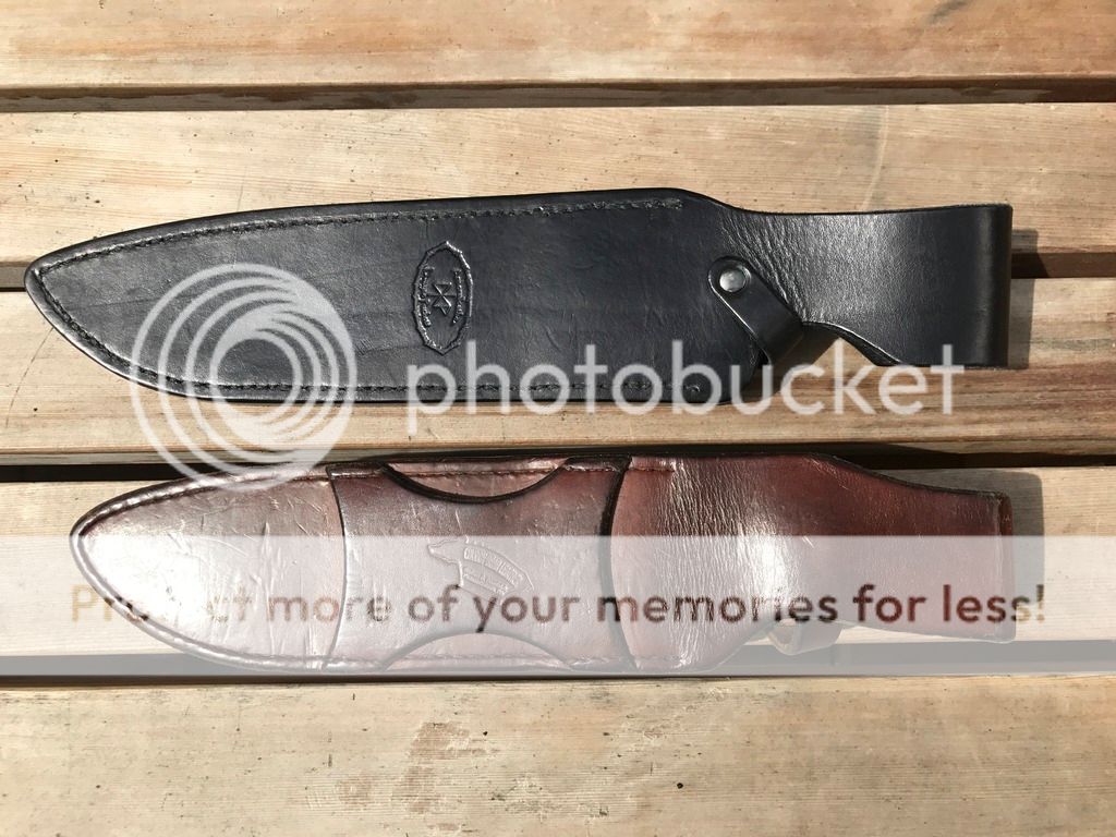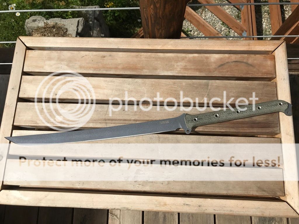 1. ASHBM, Anniversary Steel Heart Battle Mistress, INFI, Double Cut Bead Blast Finish, Sterile, Black Hand Shaped Micarta Handles with Red Liners. Mint Condition. I am selling with a drop loop Leatherman sheath. $750