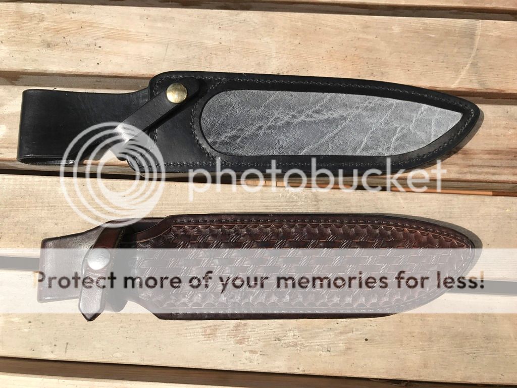 5. NMFSH Nuclear Meltdown Fusion Steel Heart Leather Sheath by Leatherman with Water Buffalo or Elephant Inlay. $90 SPF