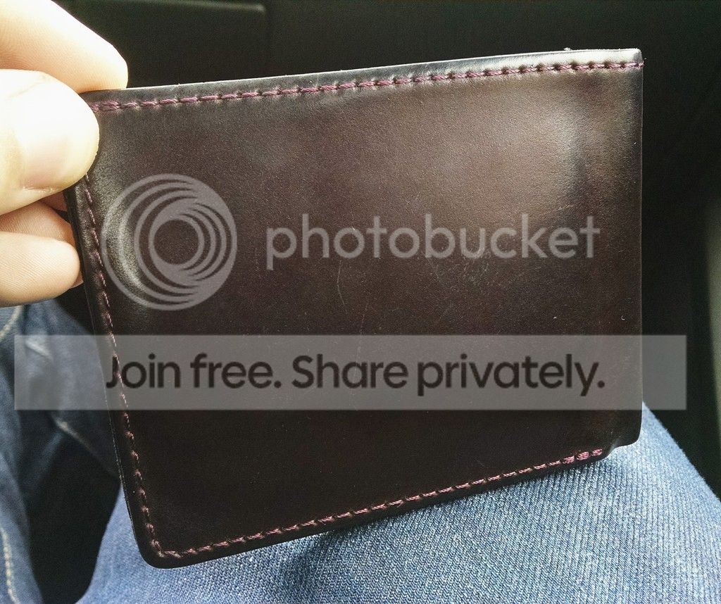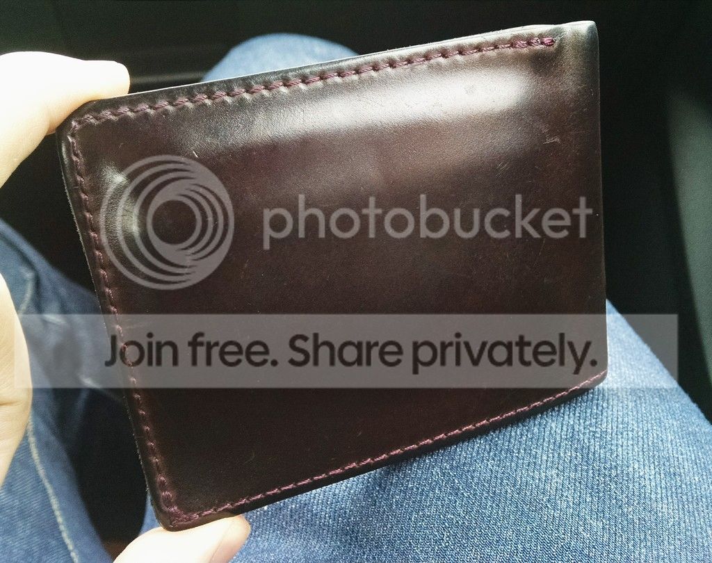 This one is done up in the classic horween color 8 shell cordovan. Maroon stitching on the outside and the inside pockets are black horsehide.