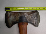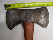 Axe is in overall good condition. Axe shows signs of normal use. Handle is still pretty solid, small chip near head and small split at base of handle.