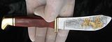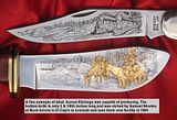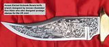 My own interest in collecting knives had started to decrease a little prior to collecting Aurum knives and I found that one could only collect so many variations before it was difficult to collect anything substantially different from what one already had. I was looking for some significant point of difference between what I had which was a number of models types and variations and yet although all different they were in many respects the same. That is where Aurum Etchings filled the void, my collecting surely would have declined after reaching what I considered enough variations had not Aurum Etchings produced knives embellished with some of the most fine artwork I had ever seem placed not on paper but on a canvas of steel, on knives and also firearms.