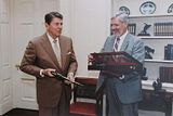 Here below Ronald Reagan is seen receiving one, I wrote a letter to Mrs Reagan about 12 months ago and was told that the knife in view is now held at the Ronald Reagan Presidential Library. There is also another Alamo displayed at the Alamo Museum (San Antonio, Texas).