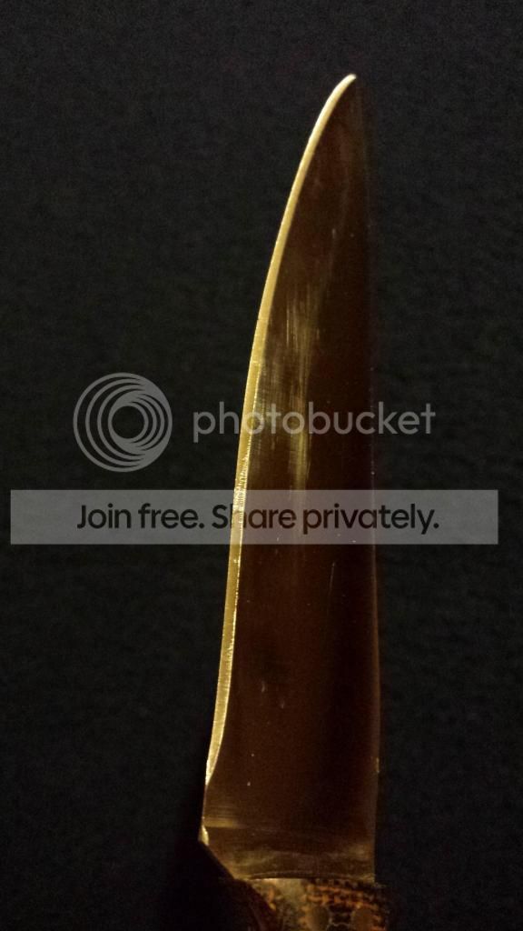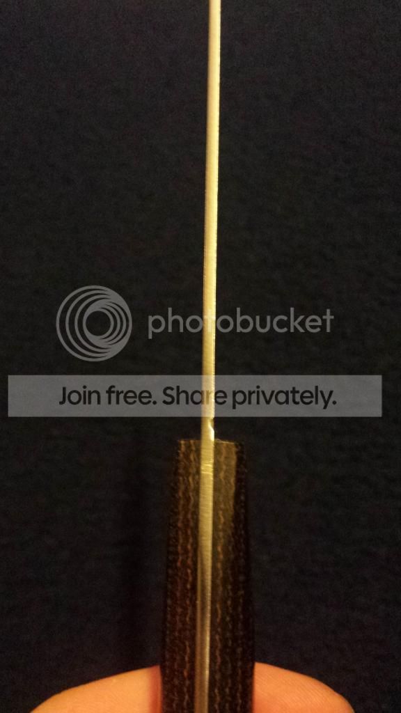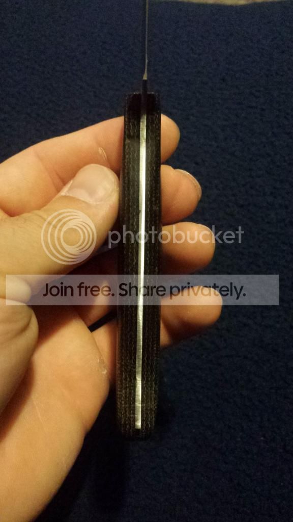 So the grind wasn't even. The scales are near glass smooth which get slick when wet. Some of the sanding on the scales was uneven (small area) and had an accidental pointy spot or two and an over-sanded flattened spot on the butt. The blade/tang had some marks from over-grinding and by the scales wasn't polished to the same point as the rest of the blade. Some Minor scuffs on blade in the right light/angle. The kydex sheath is rather, well, rectangular... It doesn't fit the pocket well and doesn't follow the lines of the blade. I don't know if a tek-lok will fit but I wouldn't feel safe without any form of retention since the sheath doesn't offer much.