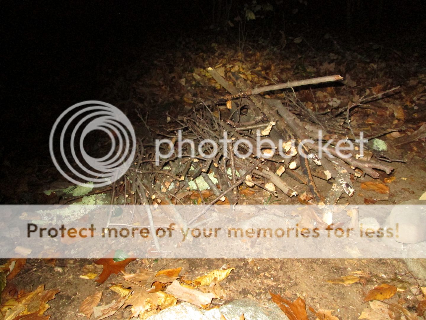 The usual 3-part pile of firewood. Nothing split, feather sticked or fancied up. There are times when those skills are needed but this wasn't one of them. The fire ring was small therefore shouldn't burn all that much. Upon retrospect maybe gathering more would have been better because a few hours later I had to do it anyways. I really just wanted to get the marginal firekit monkey off my back. In the past I had marginal means of starting a fire work just fine during the day only to fail during the night as temps and conditions changed. So is it better to gather enough wood to ensure a fire will start then persist but not enough for the night if temps and conditions are becoming less favorable for starting it? Or do we make sure there is enough wood to burn all night then try to get it started as the temps and conditions becomes less favorable? No sure but went with the first option.
