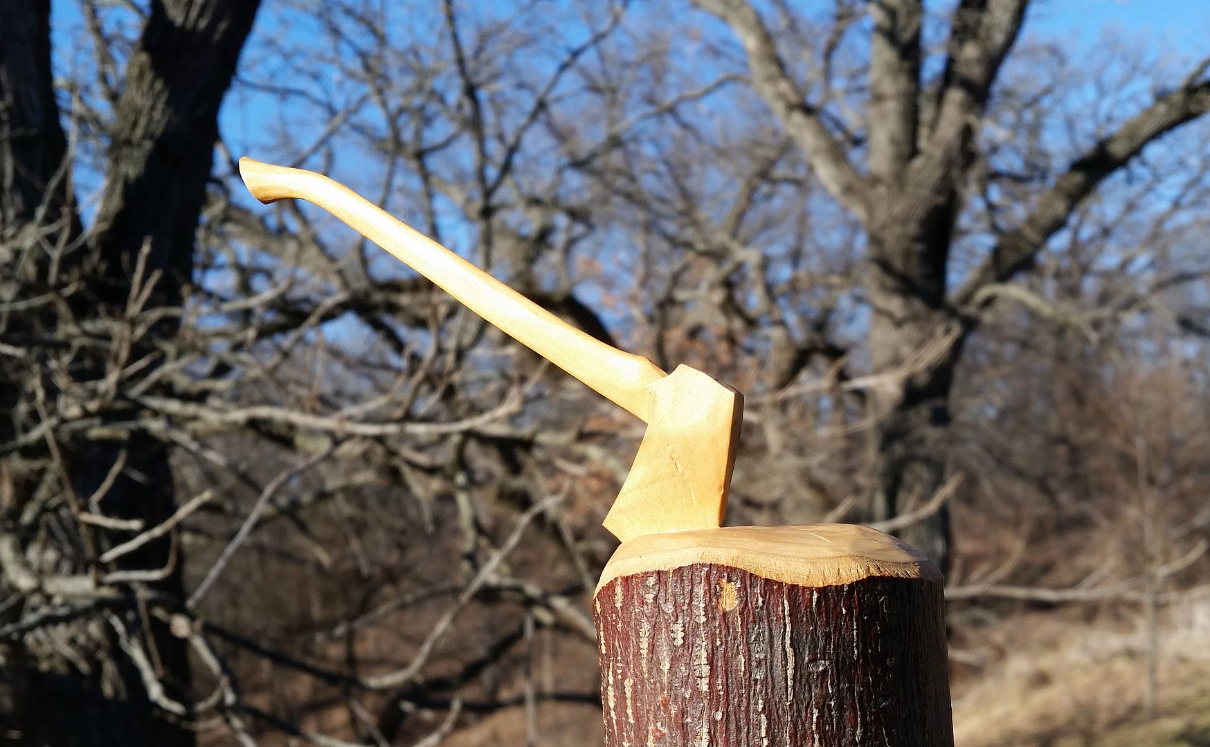 It looks to be in perfect condition, as good as the day it was new. I wish I could try it out on some timber, but I can't pull it out of the stump! Actually, at five inches long overall, I might not be able to cut or split much firewood with it. FYI, the stump is 2 1/2 inches in diameter.