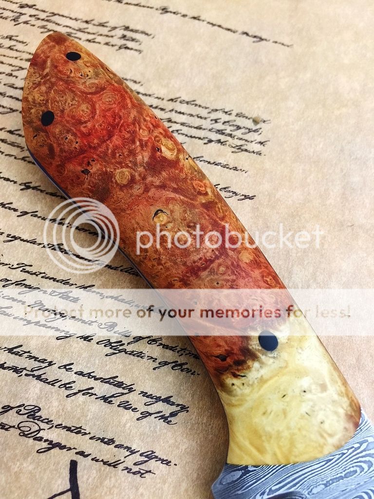 SCALES:BEAUTIFUL STABILIZED BLOODY BOX ELDER BURL "INSANE" BLUE TANG LINERS