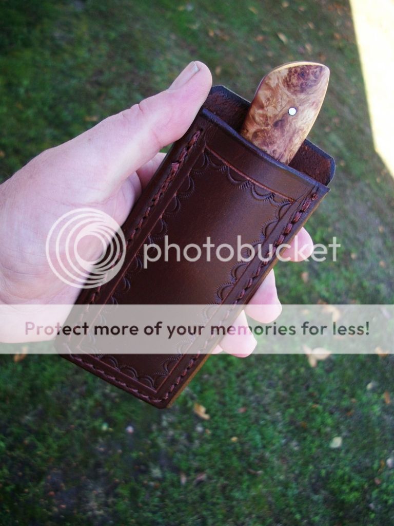 SHEATH:TOOLED BUFFALO HIDE LEATHER BACKPOCKET SHEATH