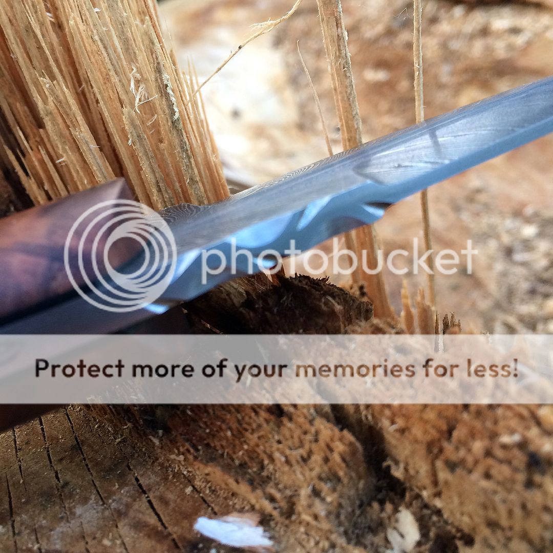 STEEL: L.FOWLER 1095~15N20 {{FINE FEATHER DAMASCUS }}WITH DEEP TOP SWEDGE NEAR DAGGER GRIND