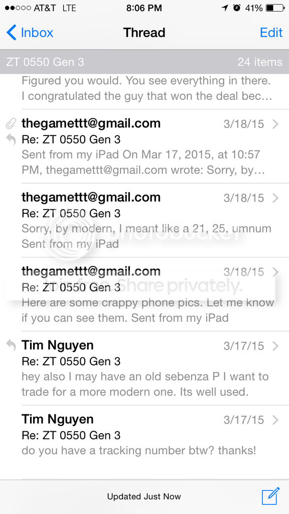 as far as crapping on the sales thread, yes I totally understand its wrong, but its pretty frustrating when someone blatantly ignores you after already agreeing to something. but rules are rules and I agree and digress. I just hope that he sees this and understands that he should treat every deal with the same courtesy and respect. we are all here because we all have love for the same hobby.