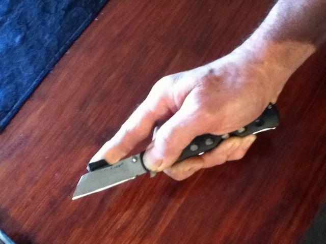 You know how I need this grip in my EDCs. (please forgive the white tape on my finger) This is what I love about the Ti Lite; that big flat area for my thumb and index finger with out too much height to the handle.
