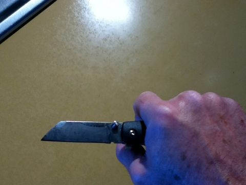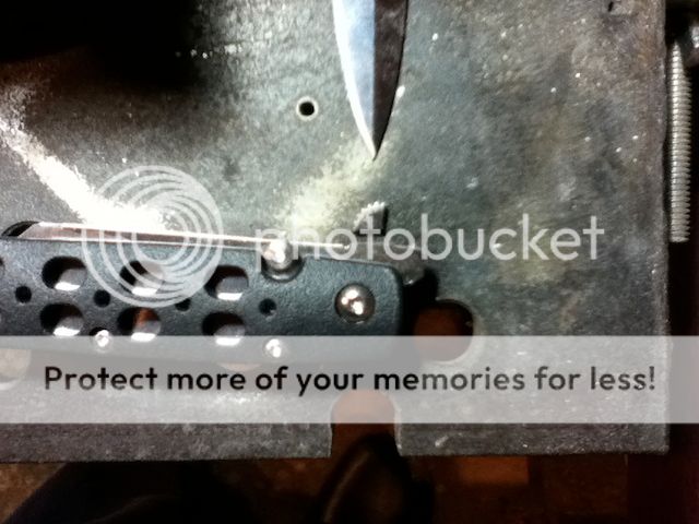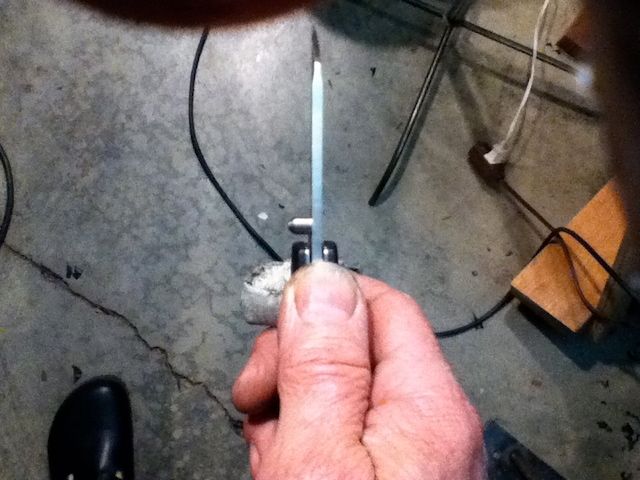 The only thing I used it to cut while brand new and in its stock blade shape was a bit of ragged fingernail and then we were off to the work shop to chuck up an abrasive cut off wheel and then a visit to the Norton 3X bench grinder wheel.