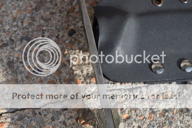 L.R. Butch Harner Combat/Survival Knife. CPM 3V, 5.75" blade, 10.5" overall. .22" thick. This has been used and shows some wear on the parkerized finish. Includes kydex sheath that can accommodate vertical or horizontal carry. Price - $200