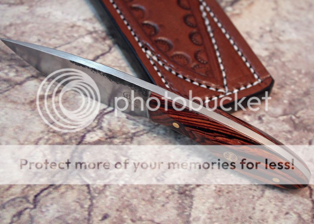 Bailey pocket fixed blade with cocobolo handle and leather sheath. Gorgeous Hamon in Hanson's W2 steel. Sharpest knife I've ever owned. Carried twice, never used except to open an envelope or two. I keep trying fixed blades and I keep not knowing how to carry them... I'm dumb. $200