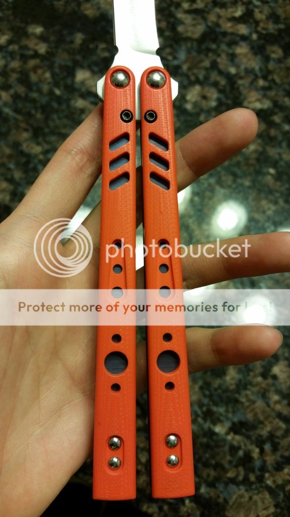 2) Rotten mantis regrind premium orange replicant. Condition is 8/10 with the scratches on 1 side of the blade. Handles and orange scales are pretty much new. Spacers are modified, polished sex bolts, dlc coated screws. Comes with everything original including box, latch, and pocket clip. $OLD