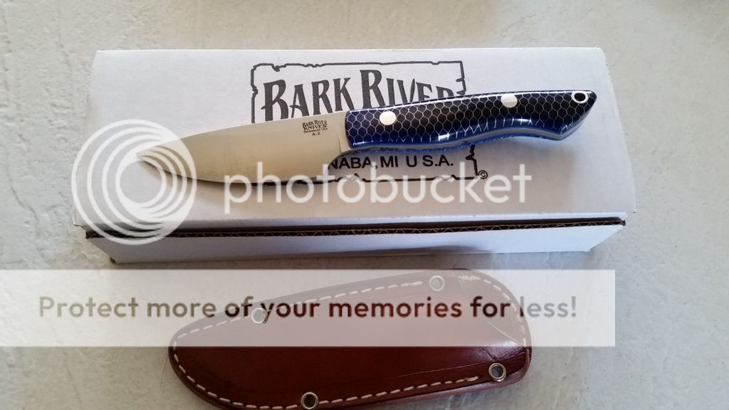 1. Bark River Kalahari Bushman with Blue C-Tek handles, A-2 steel and left handed sheath (I carry FB knives on left side due to my sidearm being on my right. Right handed sheaths can be purchased online.) It has been lightly used and carried. Minor usage marks on blade, handle is perfect. $135.00 [SOLD]