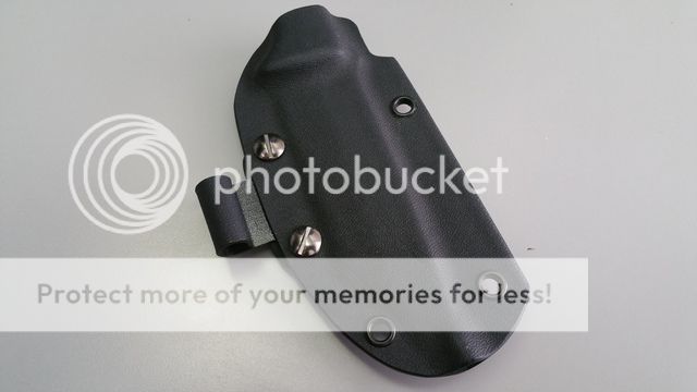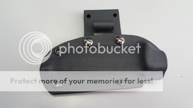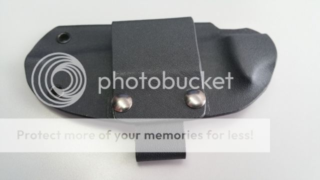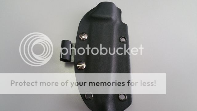 Since this was the 1st production, it comes with a black kydex sheath instead of their current standard leather. Also comes with a belt loop and firesteel attachment (both also kydex) and a spare screw. See pictures below for examples of various carry options. The firesteel loop is separate and does not need to be attached if you don't want it to be. Also to clarify, the only plastic washer included is on the spare screw pictured; it did not come with plastic washers on the 2 screws attached to the sheath in the photos.