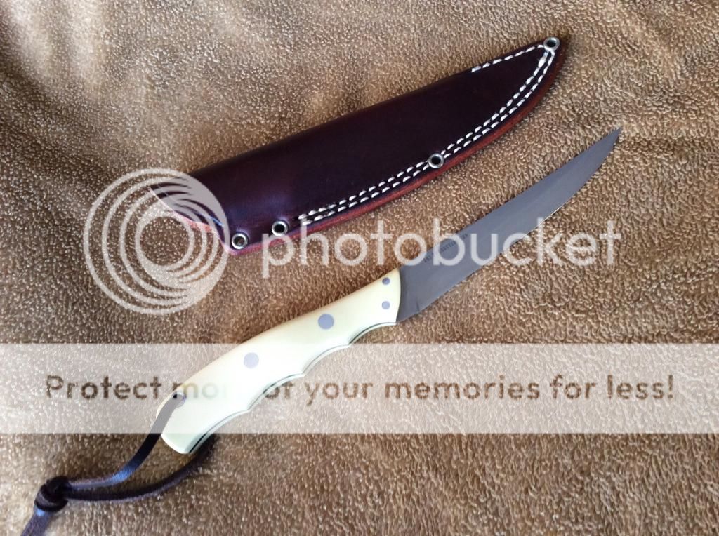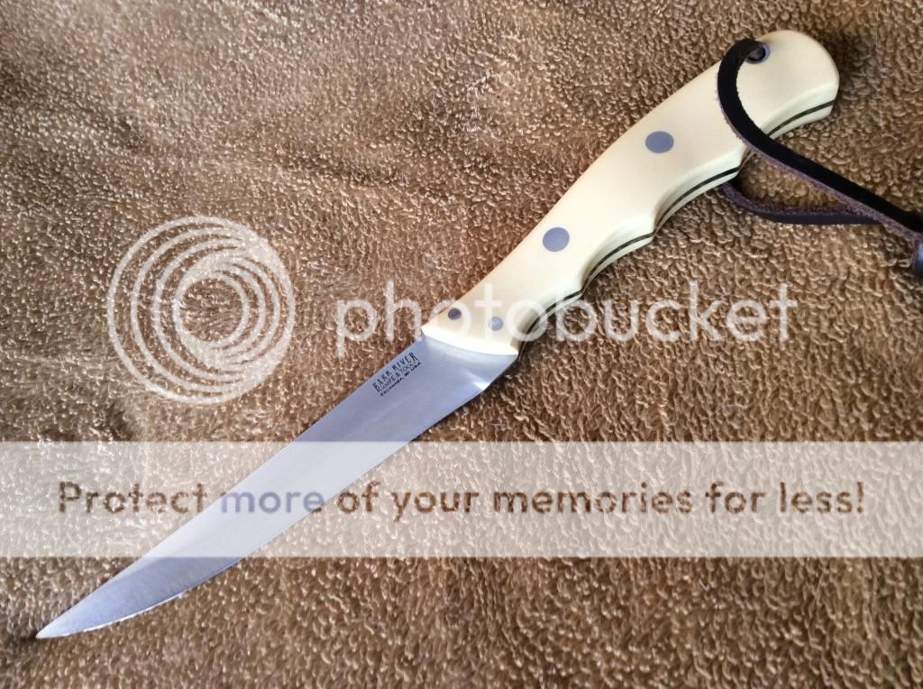 Bark River Canadian Sportsman - This is a catch & release for me. I realized I have way too many fish camp / fillet knives so I'm releasing this one back into the wild. This is a very good knife. Used by previous owner but in excellent + condition. Sheath was waterproofed previously. Sculpted antique ivory scales (great ergonomics), 9.25" OAL with a 5" blade of 12C27 which is very sharp. Blade is .090" thick.