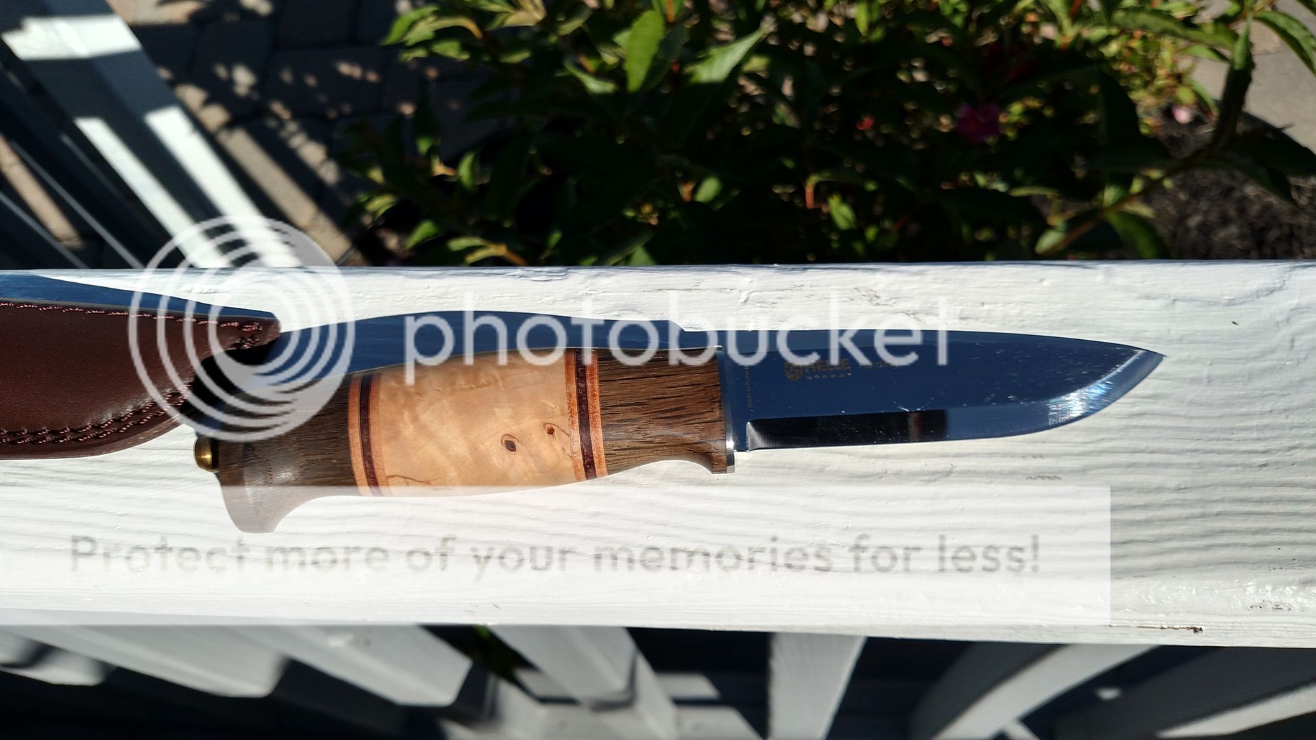 First production run Bark River Bravo 1, Mikro Canadian 2 and ferro rod, all in Big Horn Sheep. Never used or carried, but was stropped a little when I first recieved it from DLT Trading. It was my first grail purchase, which is why I've held on to it for so long despite having never used it. Combo kydex sheath, Mikro 2 and ferro rod were made to order. A few rub marks from the kydex.