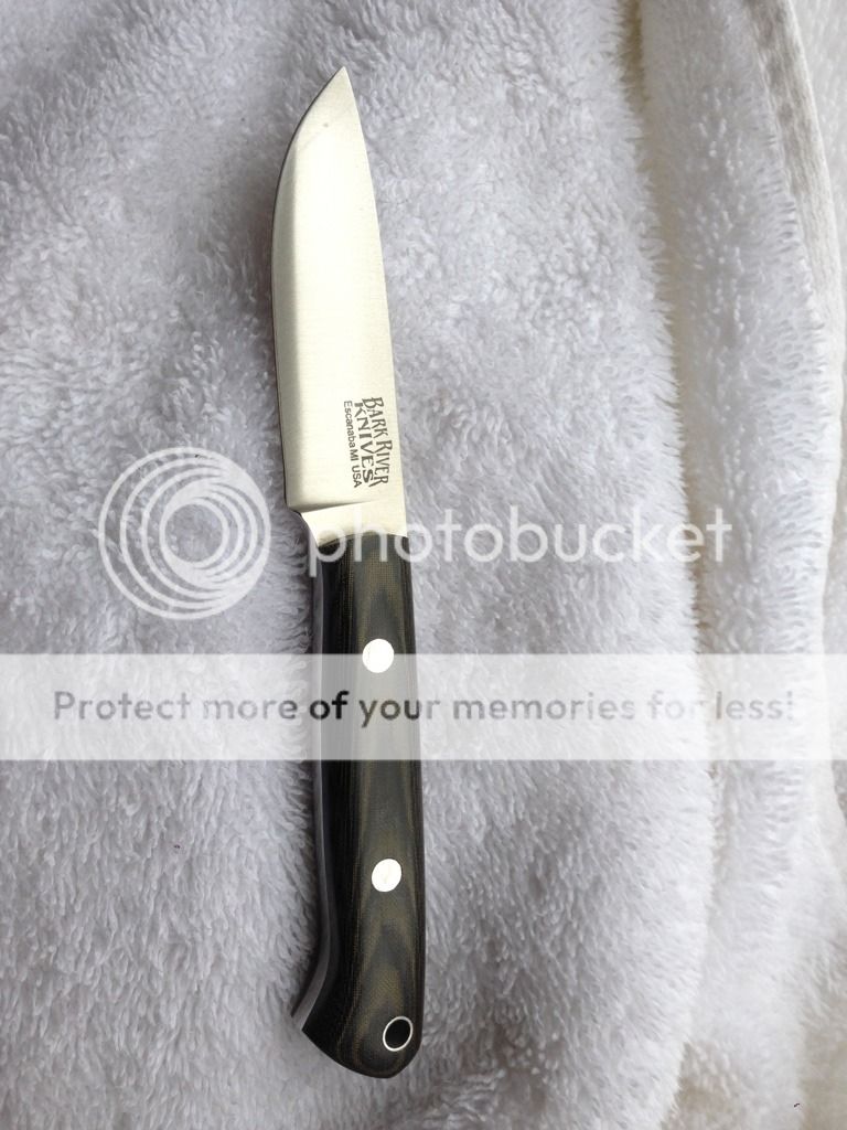 Bark River Fox River. ***SOLD*** Never carried, put on a strop a few times. Green linen micarta. Sheath and fire-steel included - sorry, no box. $130 TYD, PP, CONUS only. No trades, please.
