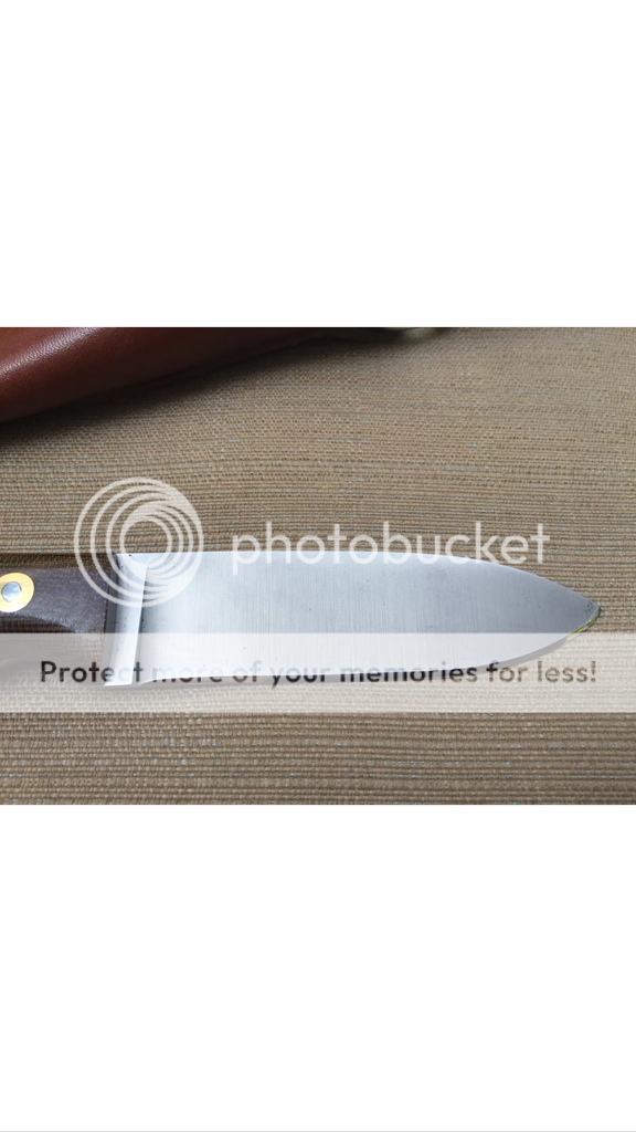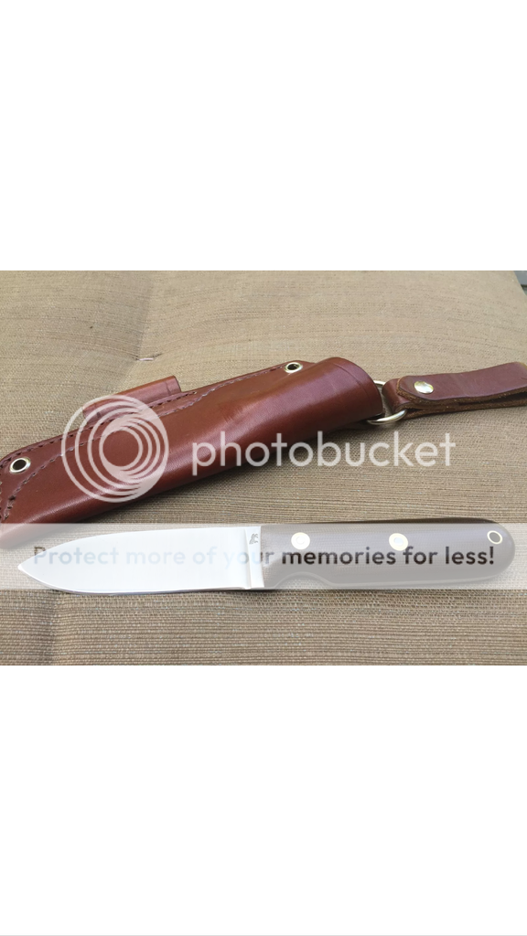 Blind Horse Knives Bushcrafter is in immaculate condition for being an early one with the JRE leather sheath. I'd almost call it brand new. Handle is green micarta.