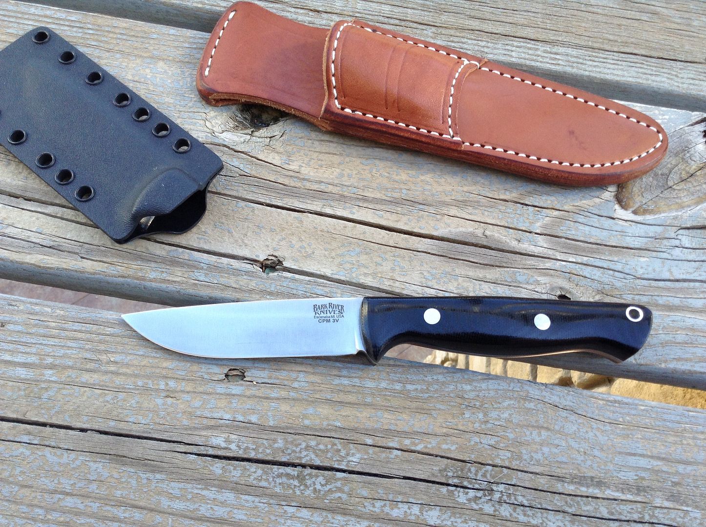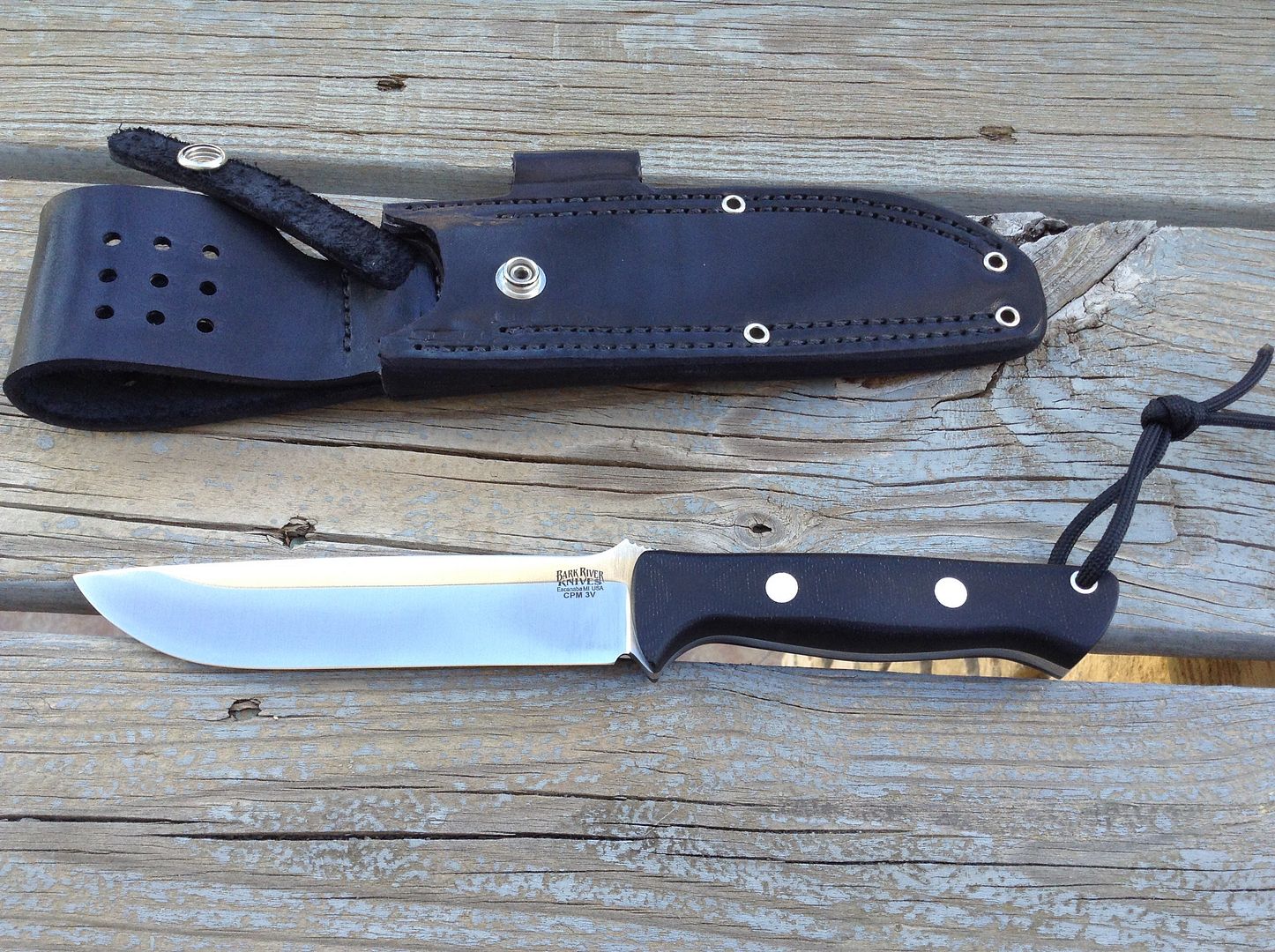 First is a Bark River Bravo II in CPM3V with matte black canvas and the factory black leather sheath. --Trade Pending--