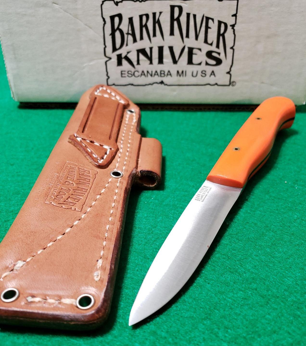 I am trying to identify a Bark River knife. My dad was a long time member here(udtjim). I inherited quite a few knives from him including a fair number of Bark Rivers. Overall Barkies are not my favorite knives but I do like some of them. Most of them are still in the boxes but one is in a perfectly nice box with no label. It has what looks to me like Blaze Orange Linen or Canvas Micarta scales, two pins with holes that go all the way through the handle(but no lanyard type hole at the end of the handle) and the North, South compass/star logo on one side of the blade. No stamp for the steel type. I like this one and would appreciate any Bark River experts who may be able to tell me for sure what it is. I have looked online to compare to any and it is similar in ways to several (Ultra Lite Bushcrafter, Bird & Trout, Aurora, Aurora II and Kalahari Thorn), but I don't think it is any of those unless it's a previous year model than any I can find. My dad died in 2011, so it is at least that old. I have a Fox River that I really like and I like this one too, but it's bugging me to not know what it is. Thanks for any help in advance.