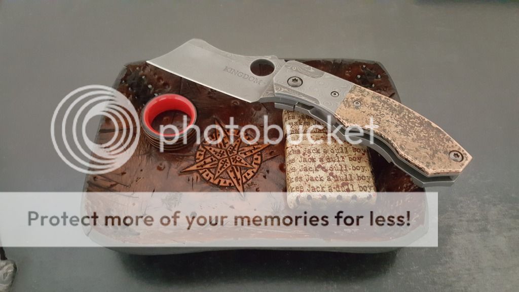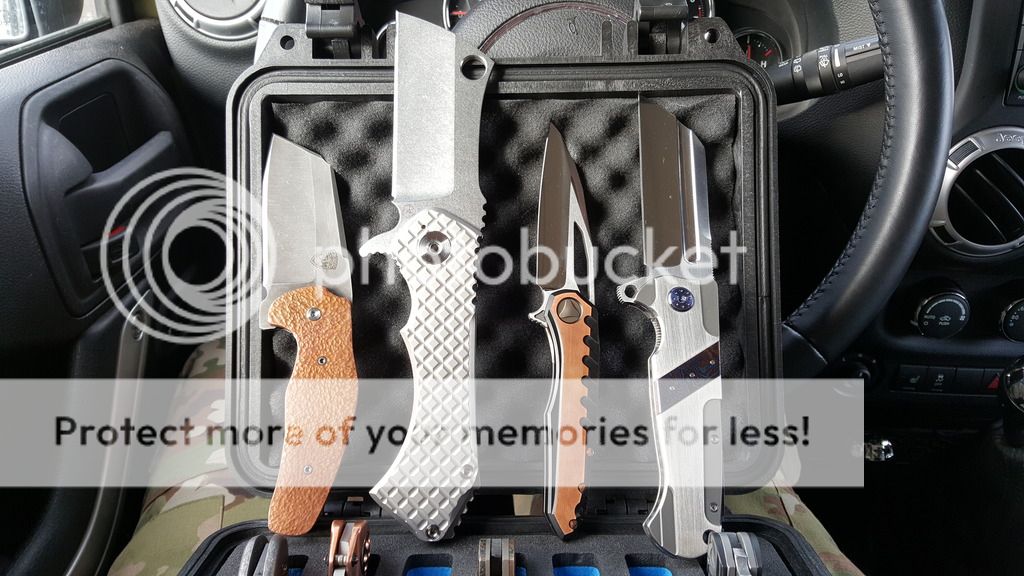 Sheepdog C01: great knife with a beaten copper scale with matching pocket clip. Titanium framelock, centered, solid detent and no blade play. S35VN darkwash blade. Small smudge in the darkwash is the only flaw I've found. Hardly carried. Asking $700 obo (first owner fall 2015)